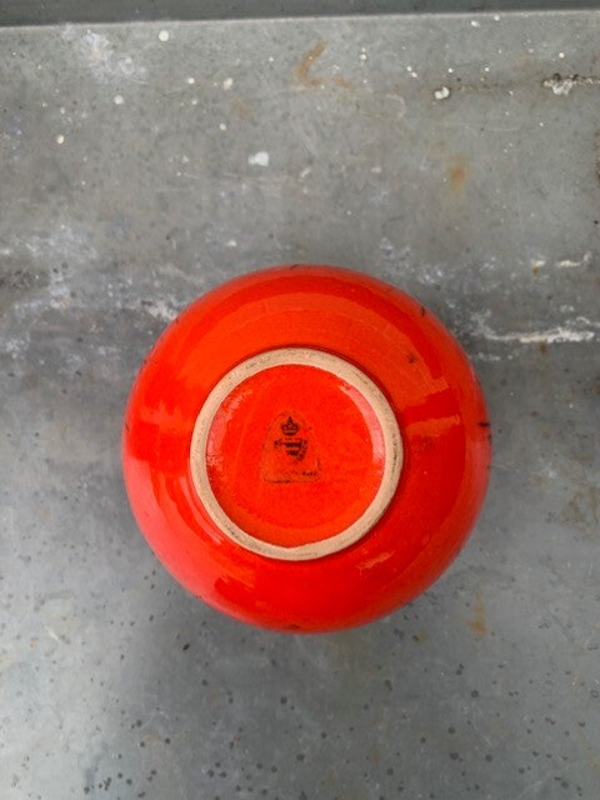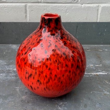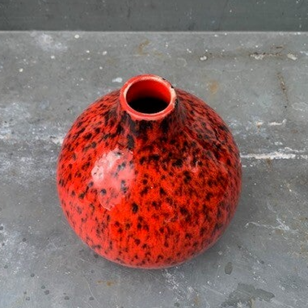 Heel mooi vaasje in Rood/Oranje met zwart stippel glazuur