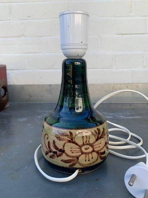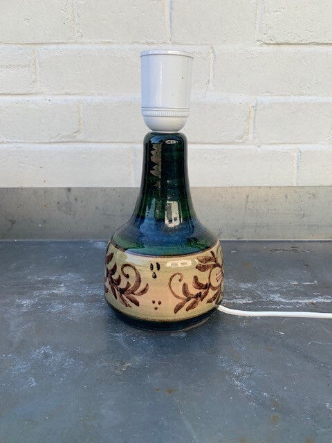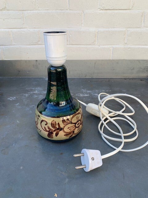 - Glazuur is in flessengroen en nachtblauw met lichtcreme kleurige band waarop bloemen in bruin zijn geschilderd