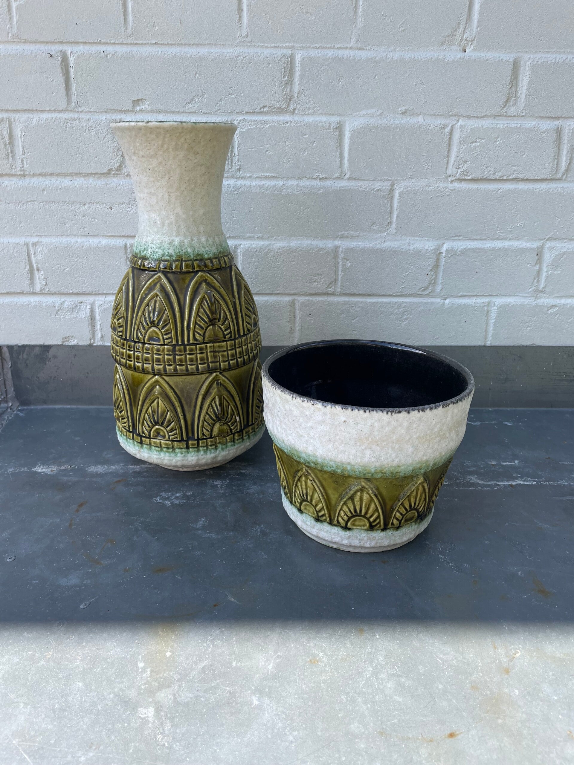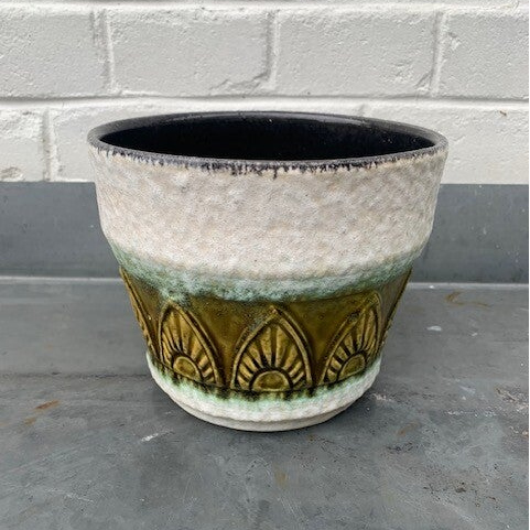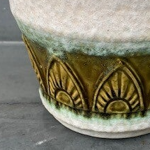 - In mat creme en groen glazuur met 'augurken' groene bies met blad-achtige figuren