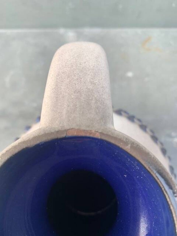 Aan de bovenzijde bij het oor heeft deze vaas een kleine haast onzichtbare chip, zie hiervoor de laatste foto