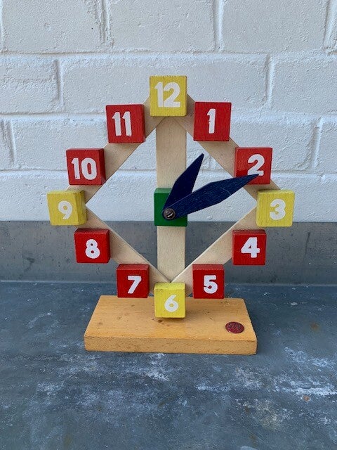 Leer jouw (klein) kind klok kijken met deze jaren '70 houten klok