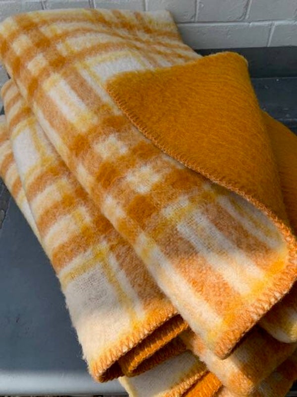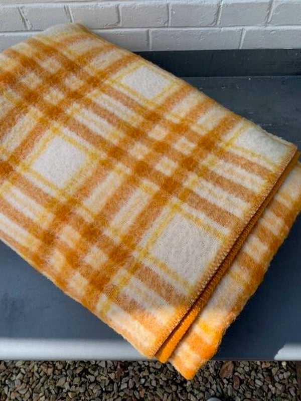 Een kant volledig okergeel, andere kant geruit oker, geel en wit
