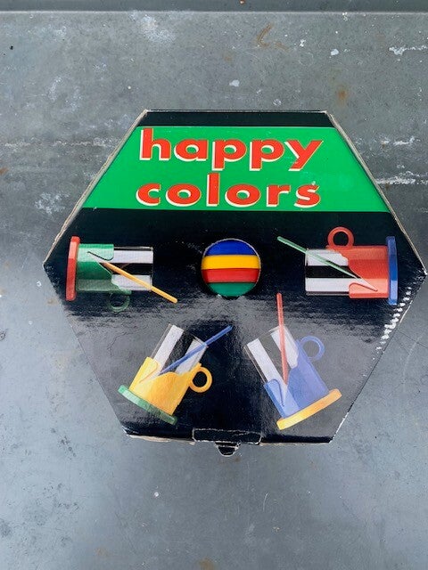 Set van 4 glazen met gekleurde houder, lepel en onderzetter
