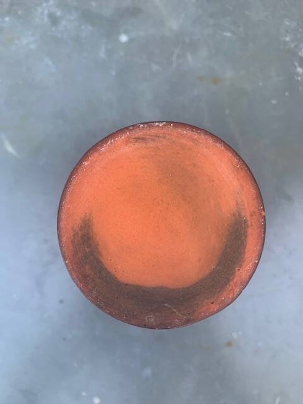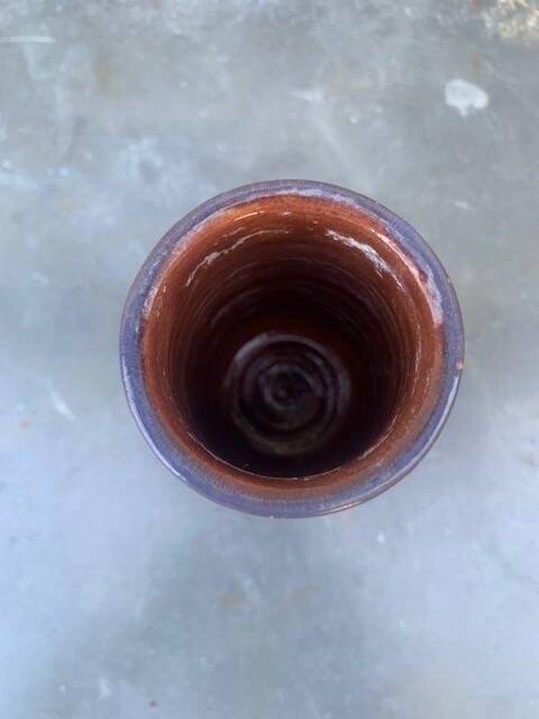 Vaasje is iets taps toelopend en heeft een ribbel in de klei gedraaid