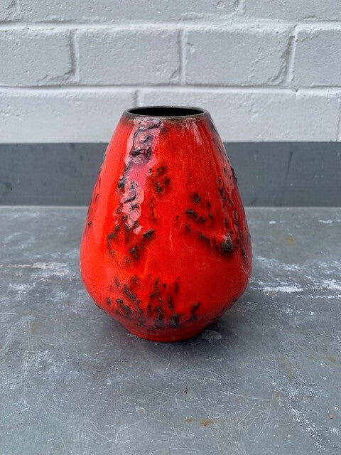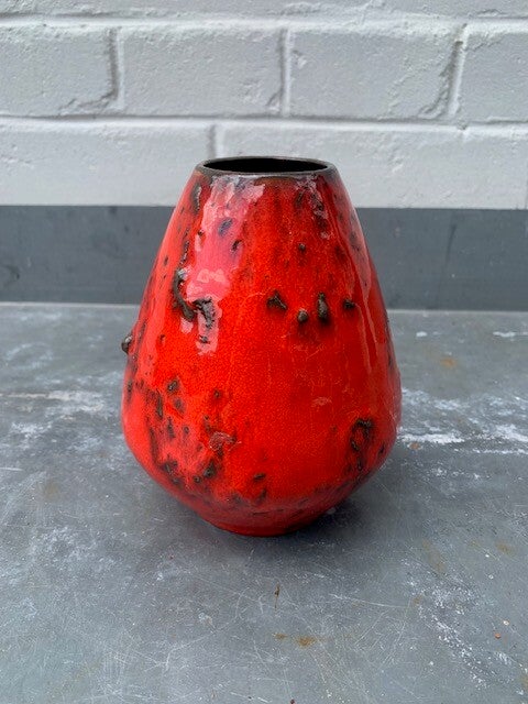 In glanzend rood glazuur met zwarte 'korrels'