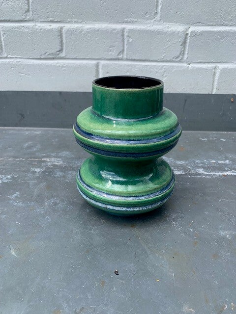 Groen glanzend glazuur met blauwe lijnen