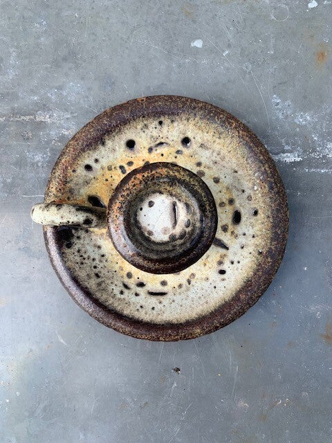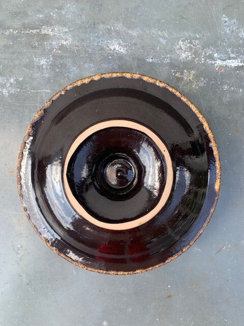 Uitgevoerd in mat bruin en ivoor met lichte geelachtige accenten op een glanzend donker bruin geglazuurde basis