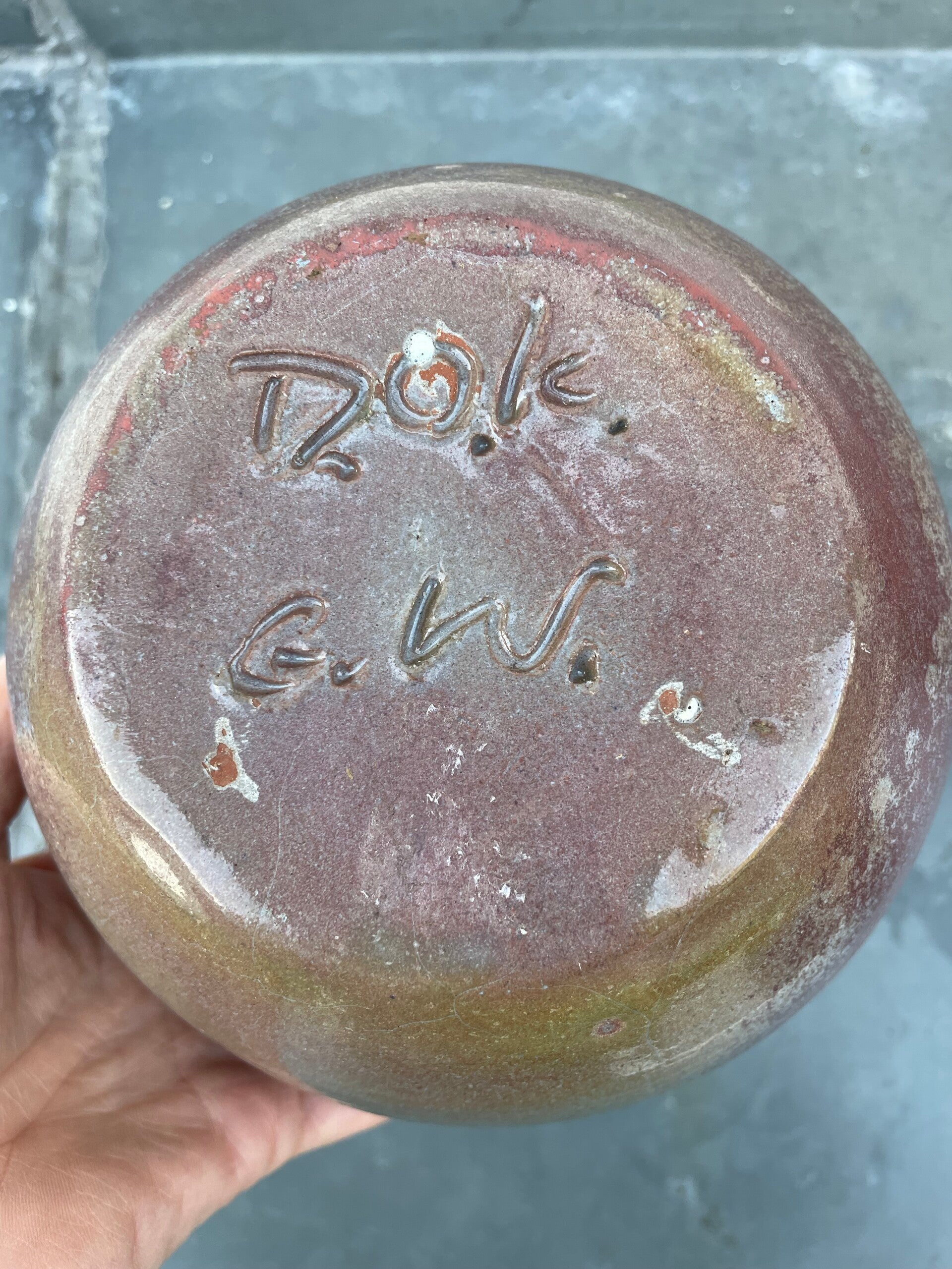 - Mat glazuur in oud roze, grijs en groen/blauw accenten