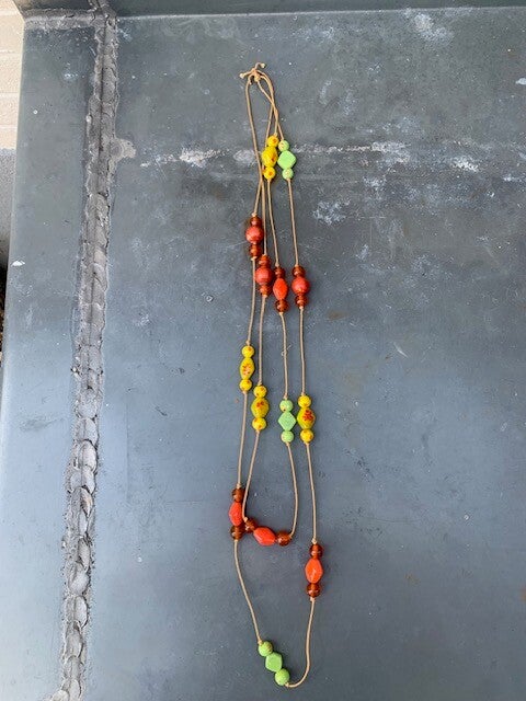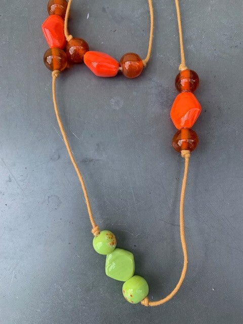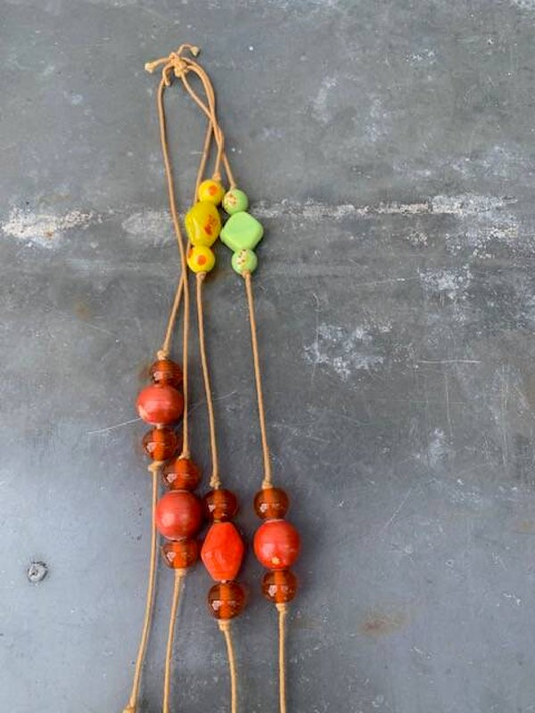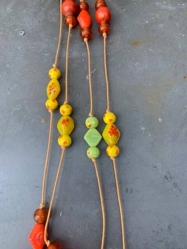 Glaskralen in geel, oranje en groen