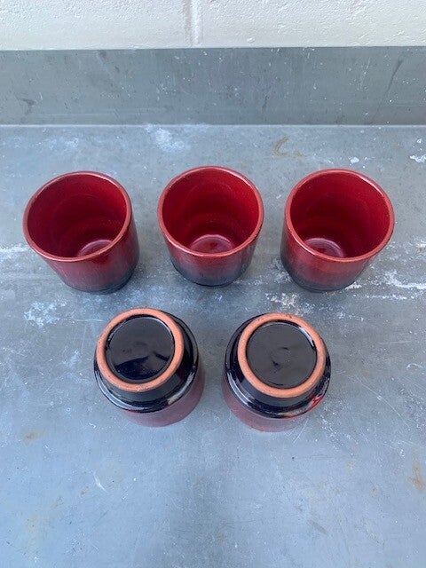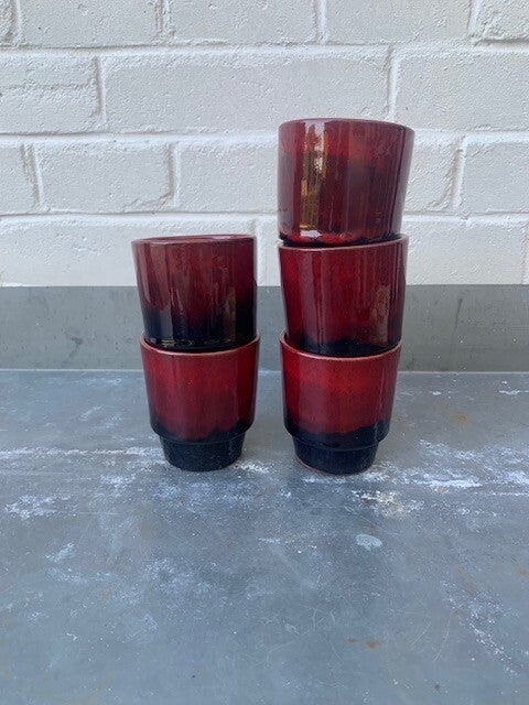 Conditie: één mokje heeft een minimale chip, 'mugbite'