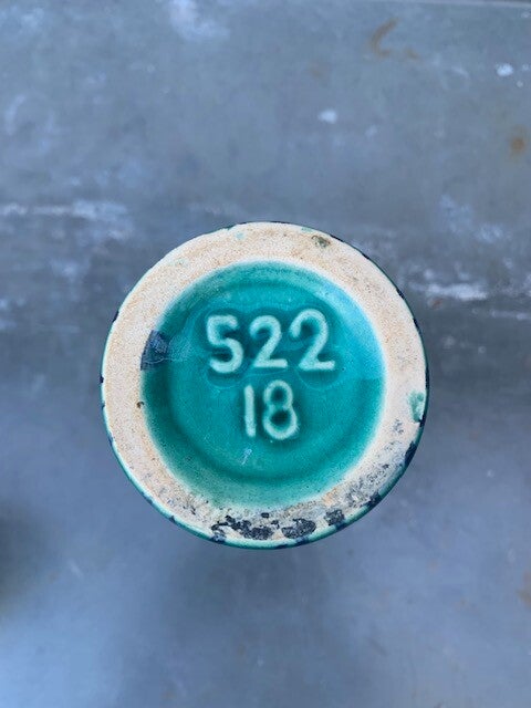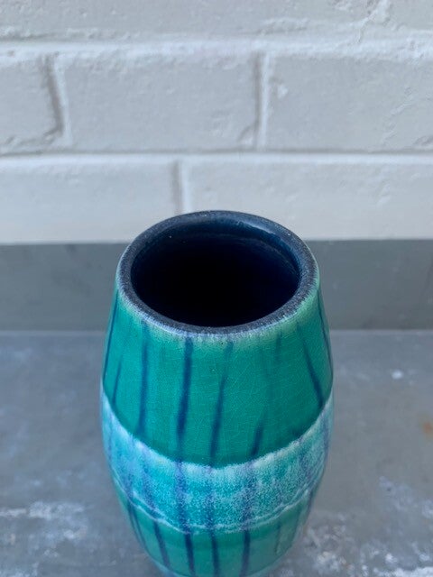 Mooi vaasje in glanzend turquoise, kobalt en wit