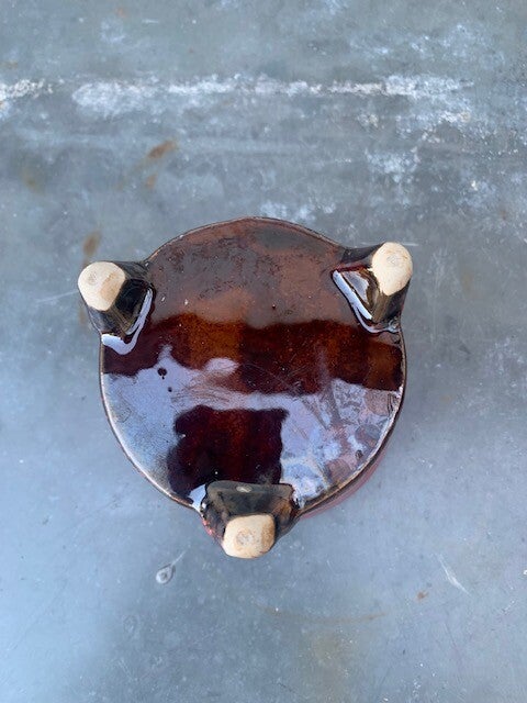 Er is zelfs een bloemmotief verwerkt in de klei, maar dit is door het glazuur bijna niet zichtbaar