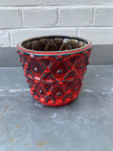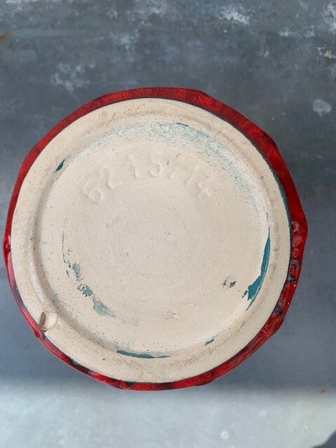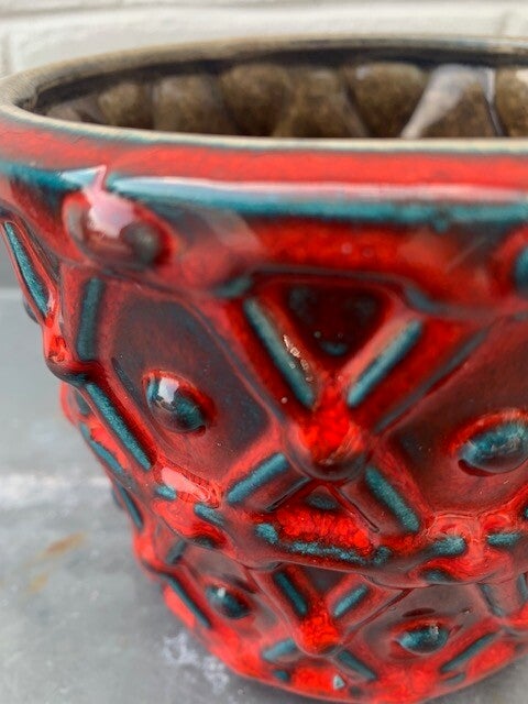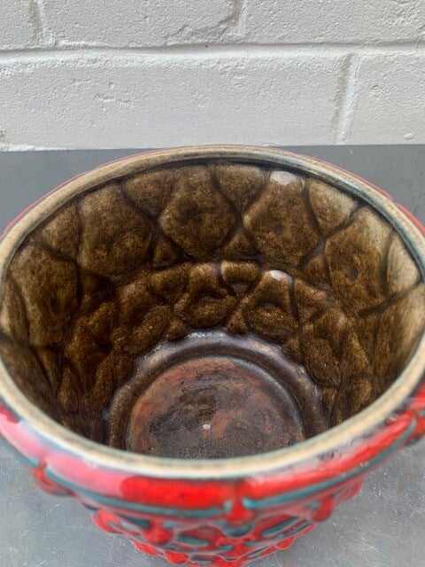 - Prachtige pot in glanzend rood en aqua glans glazuur