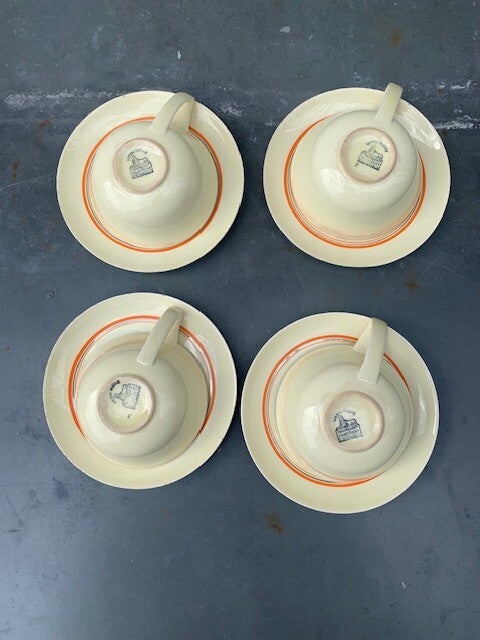 Set van 4 Petrus Regout theekop en schotels 'Ineke Nova'