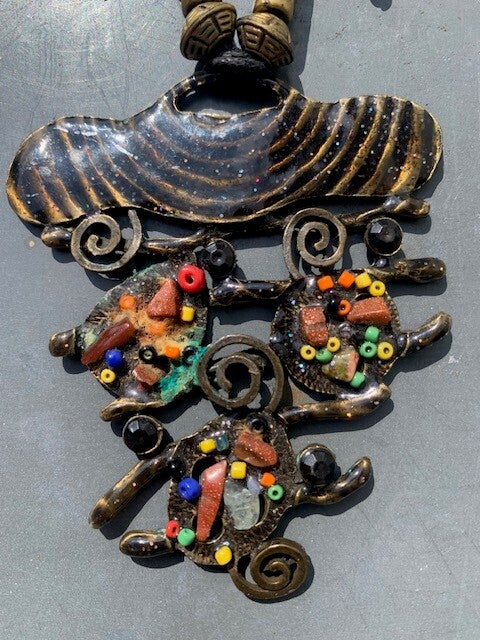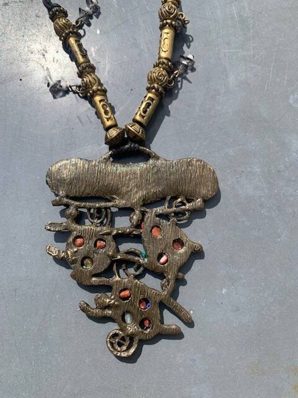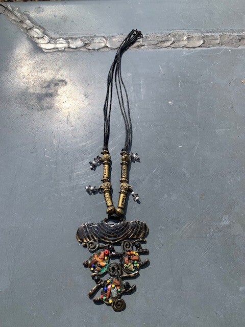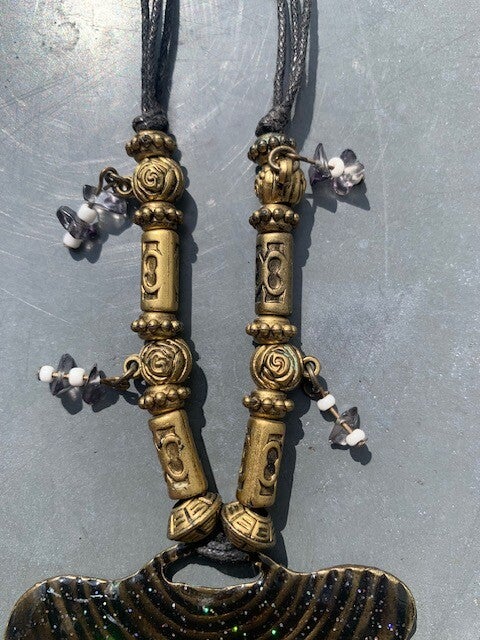 - Hanger hangt aan een drievoudige veterkoord waaraan nog extra kralen zijn geregen
