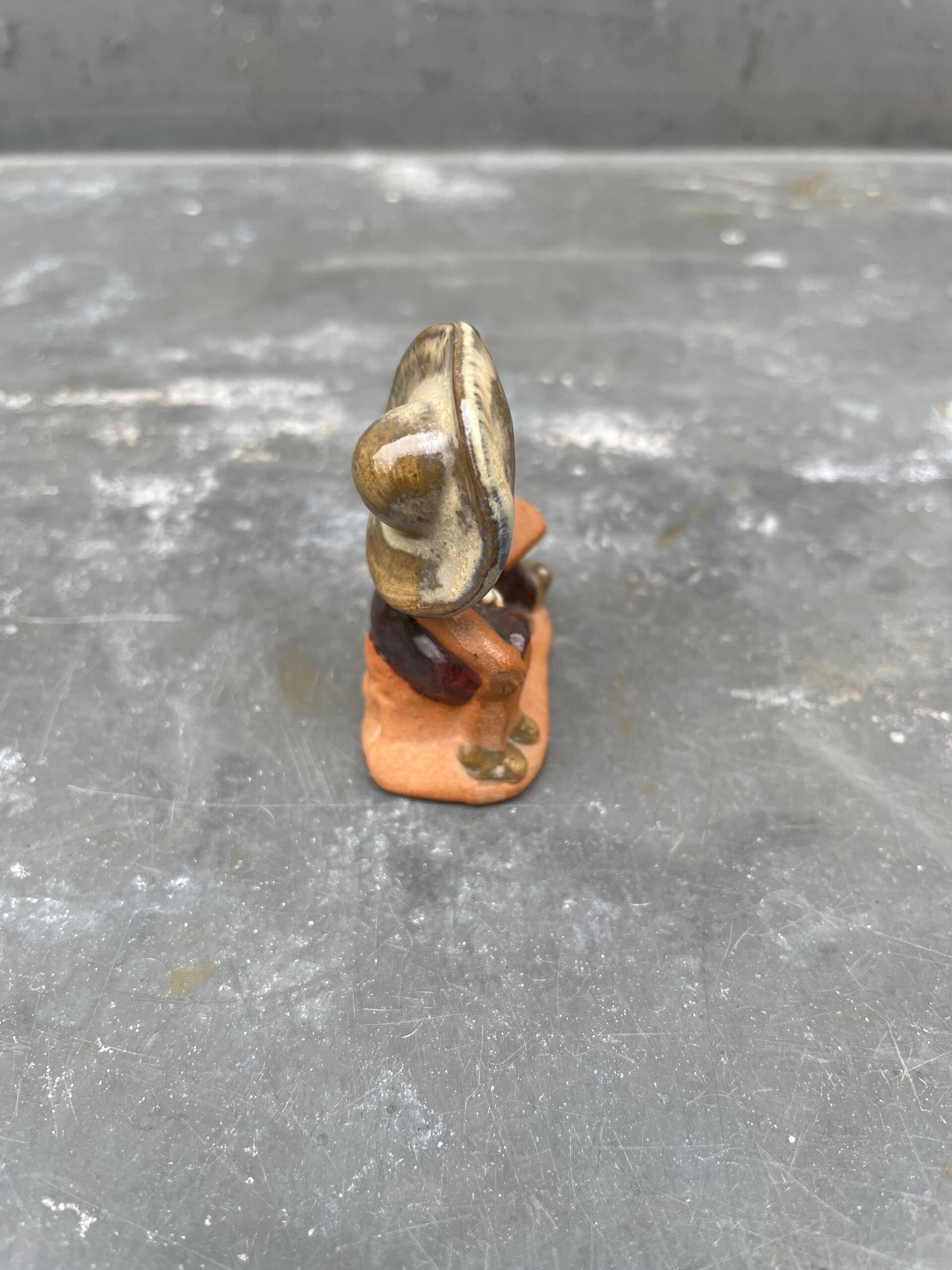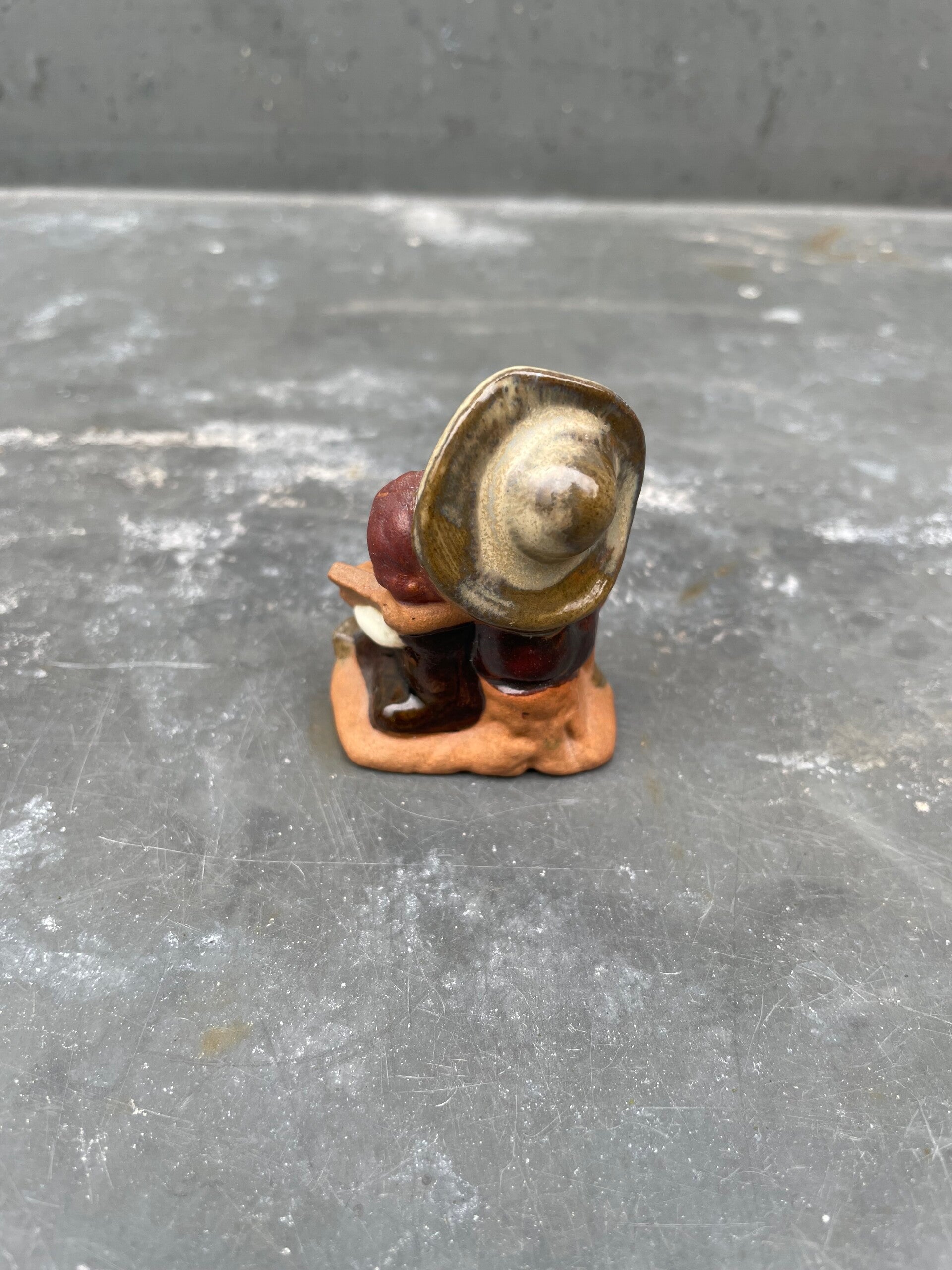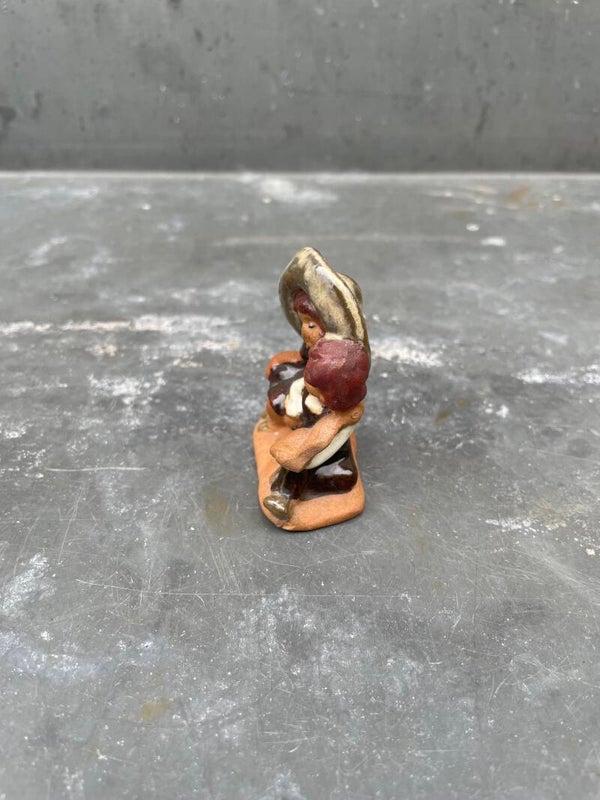Zowel glanzend (kleding) als mat glazuur (gezichtjes en haar) toegepast in aardetinten