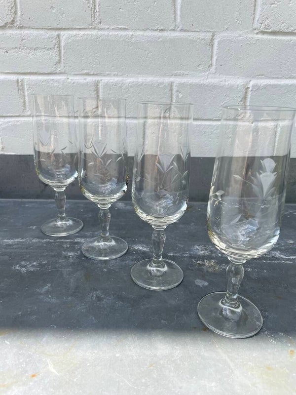 Set van 4 gegraveerde glaasjes op voetje
