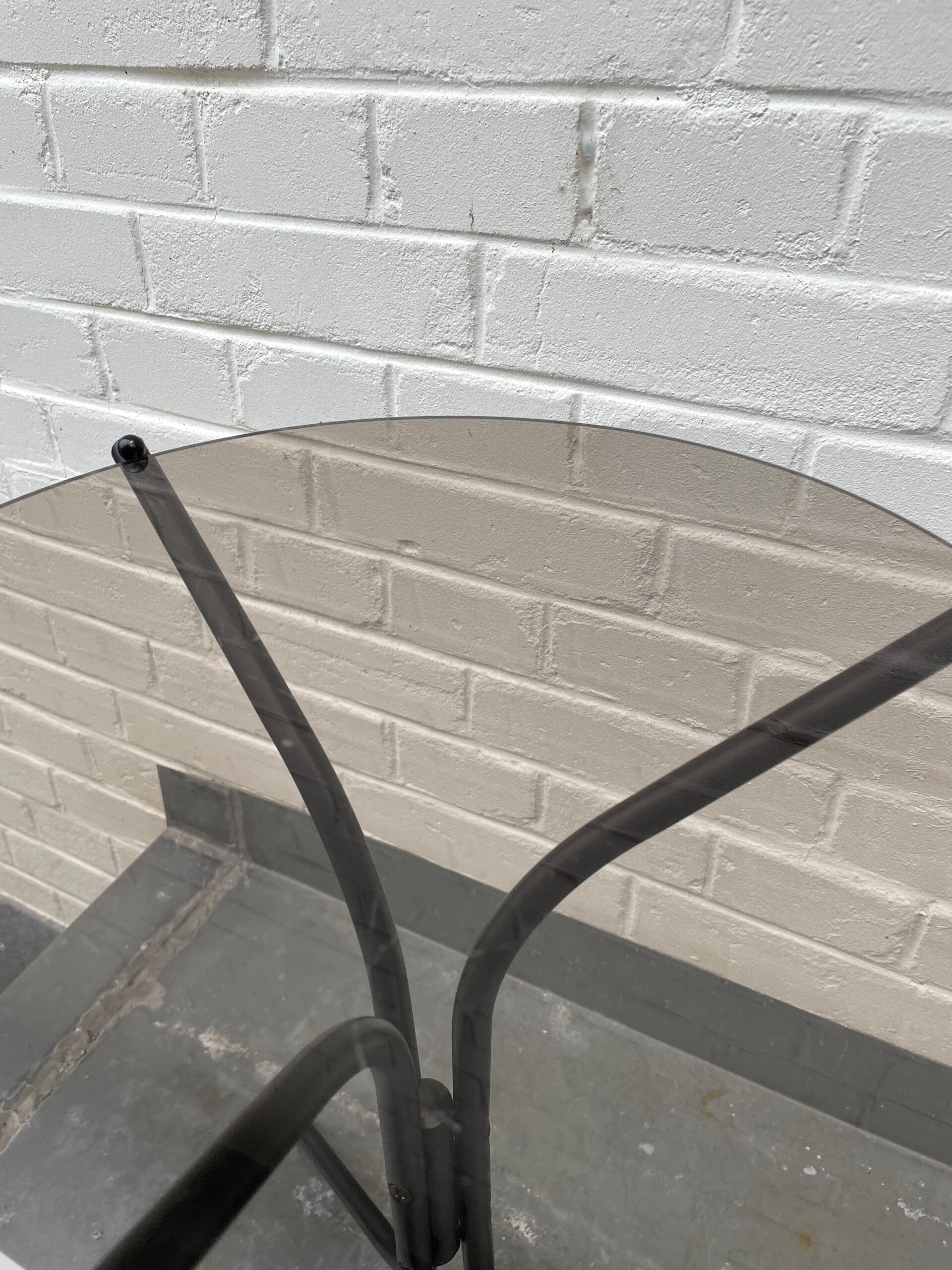 Conditie: het glasplaatje heeft wat krasjes en de poten minimale beschadigingen, zie de foto's