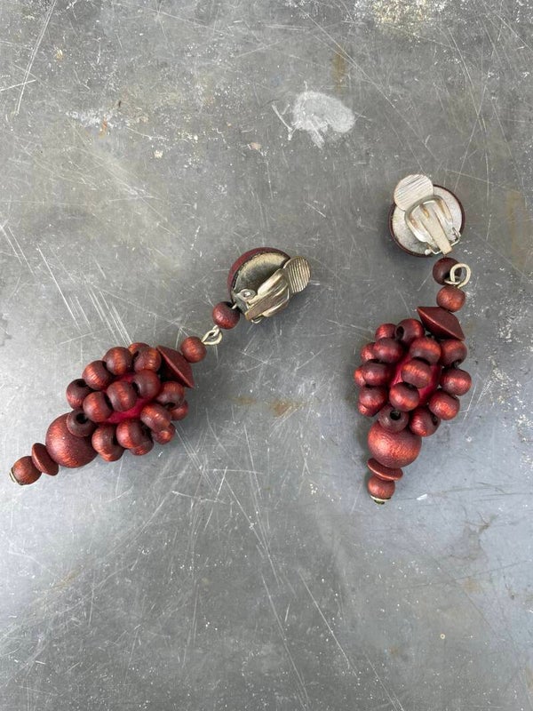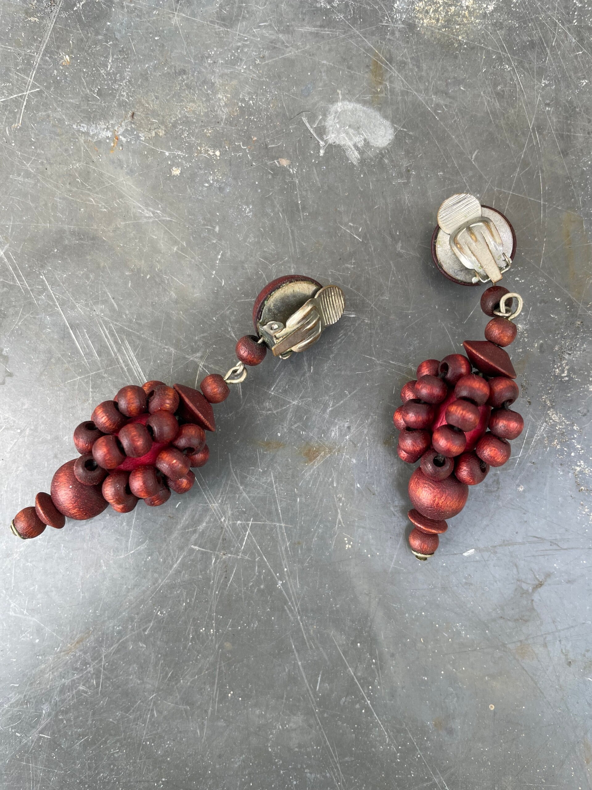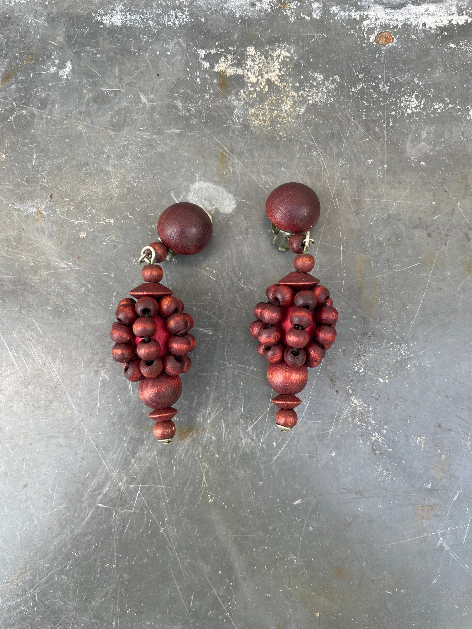 Van houten kralen in donkerbruin en een rode kraal binnenin