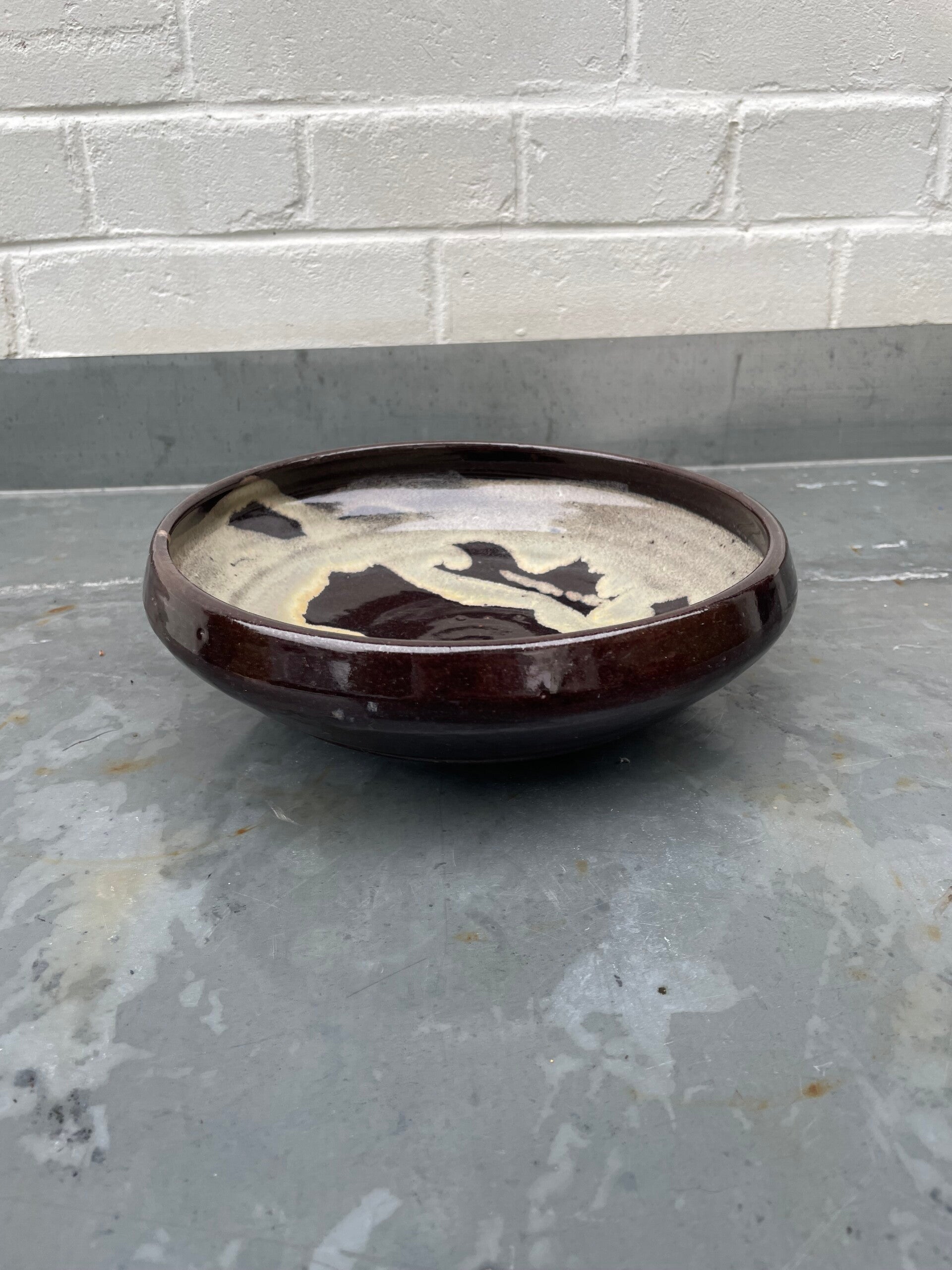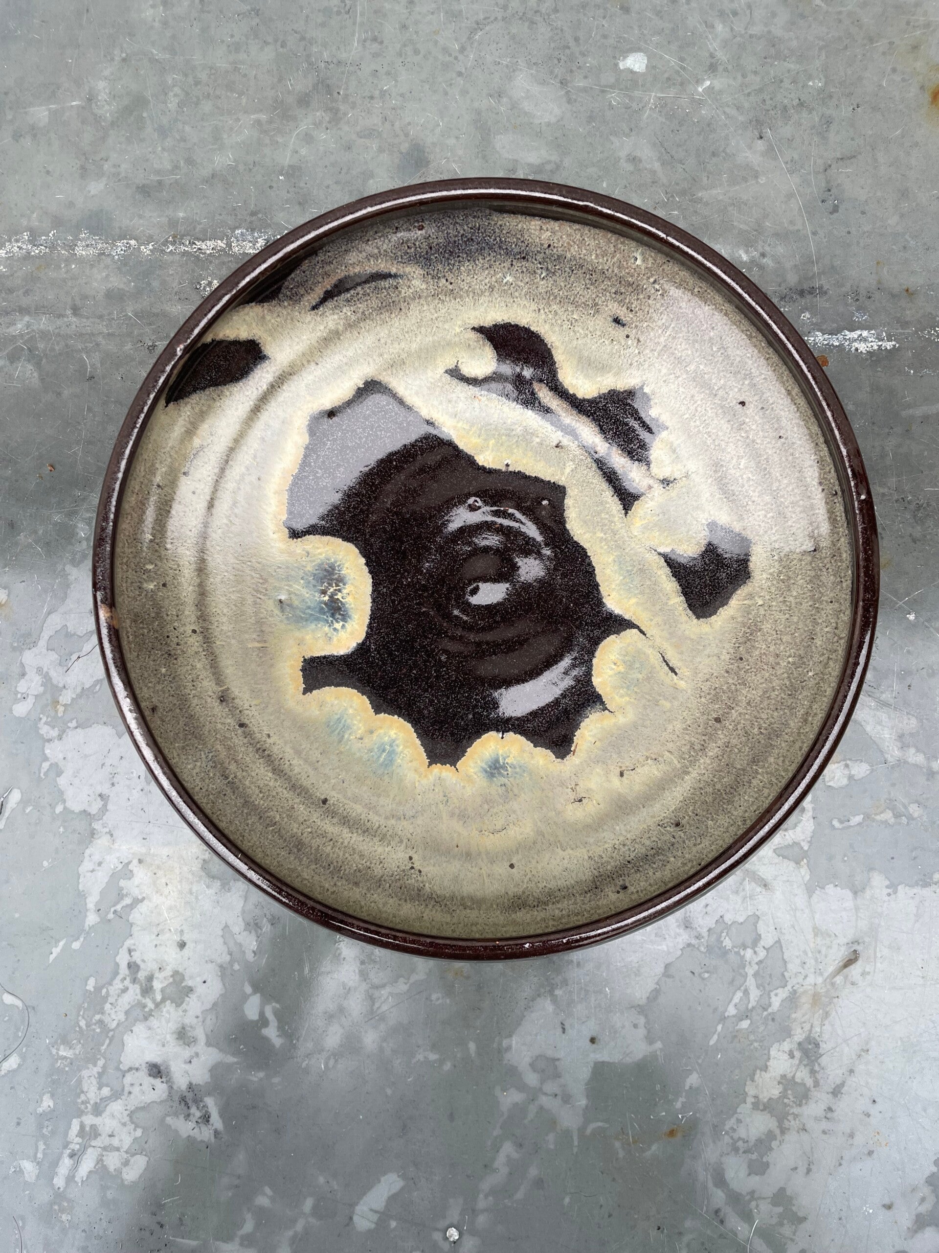 Glanzend glazuur in bruin, blauw, lichtblauw en ivoor