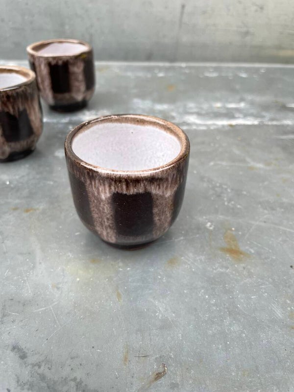 Donkerbruin met lichtbruin/taupe horixontale en verticale lijnen, de verticalen lijnen hebben het Fat Lava effect