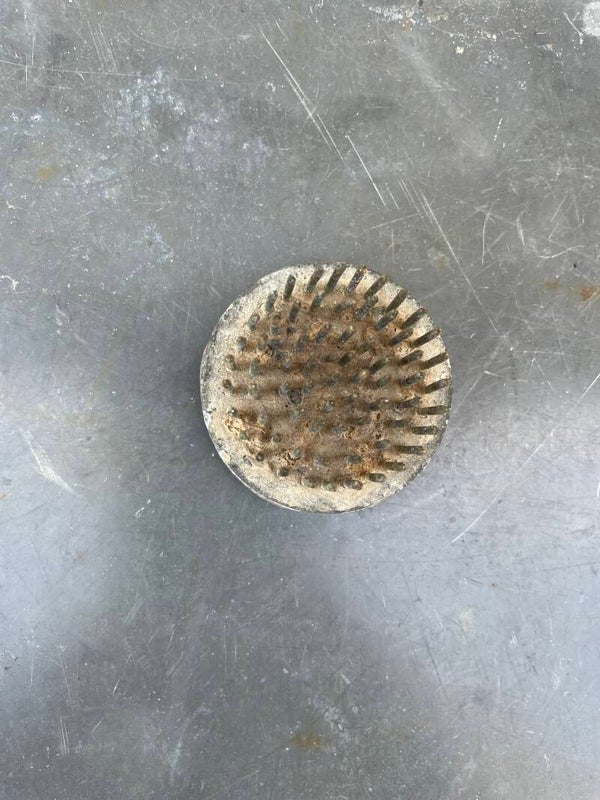 - Soms met gaatjes in keramiek, hier op prikkertjes/spijkertjes op een verzwaarde ondergrond waardoor het boeketje niet omvalt
