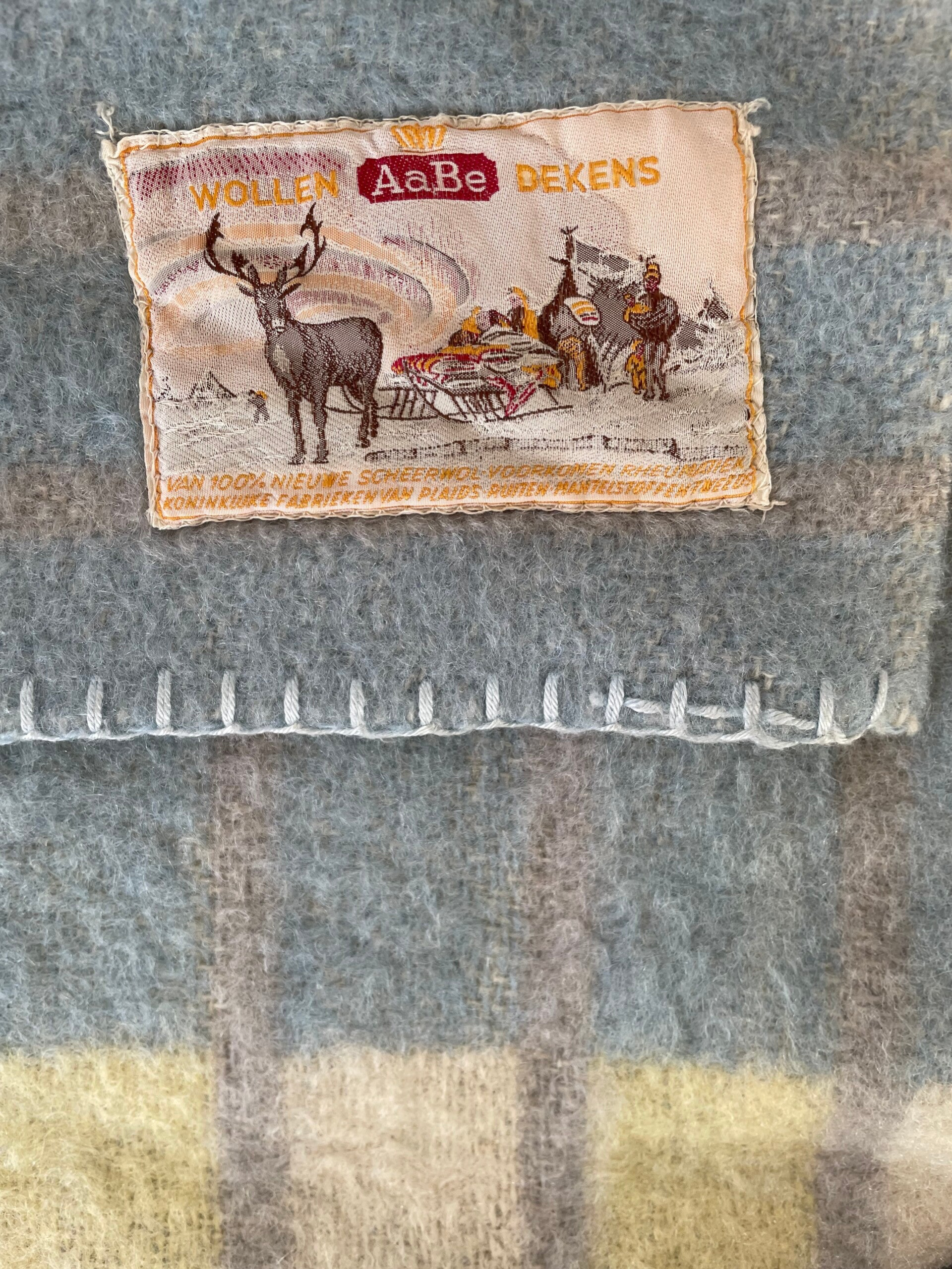 Een geruiten deken in pasteltinten: lichtblauw, lichtgeel, lichtgrijs en ivoor