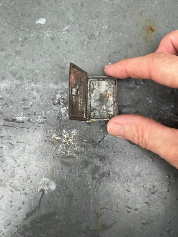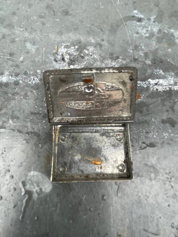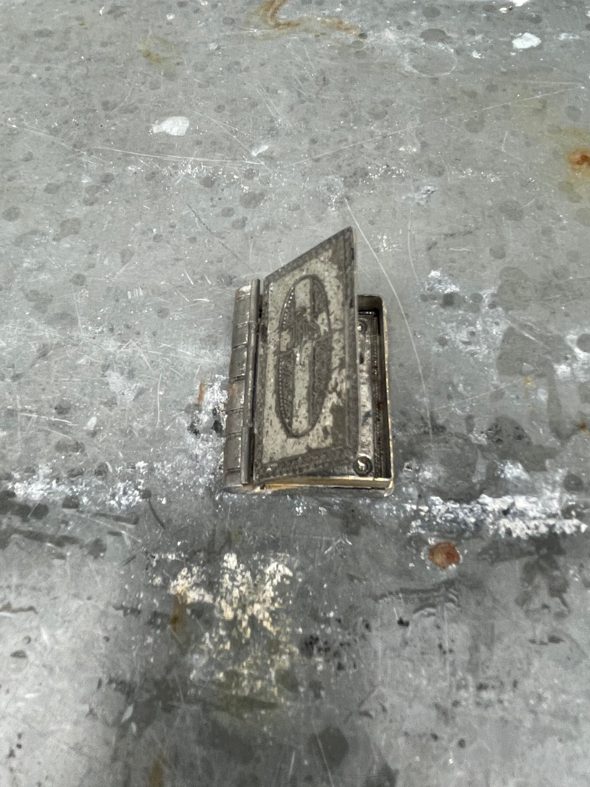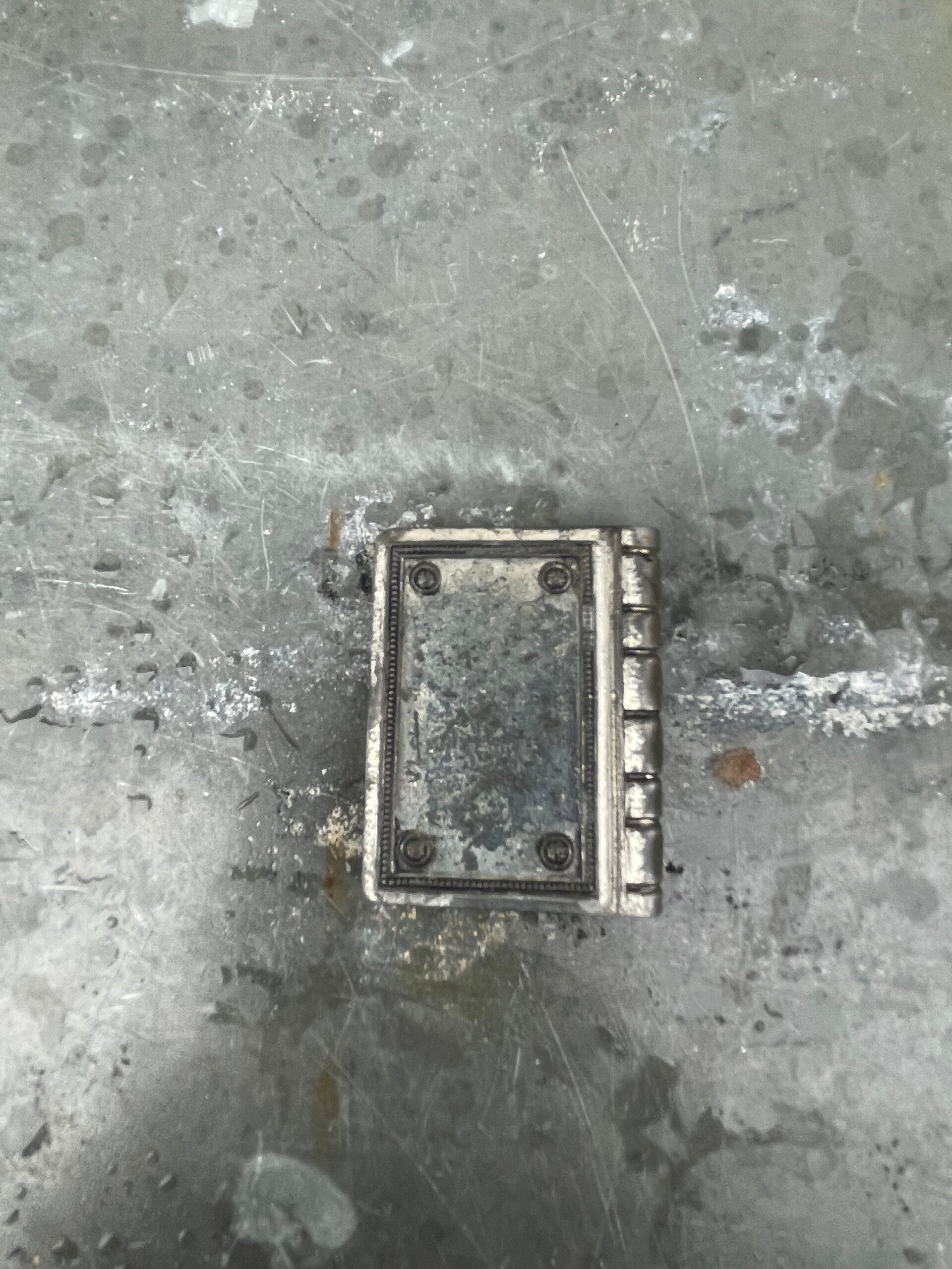 Metalen buitenzijde en de zijkanten, de bladzijden, zijn goudkleurig