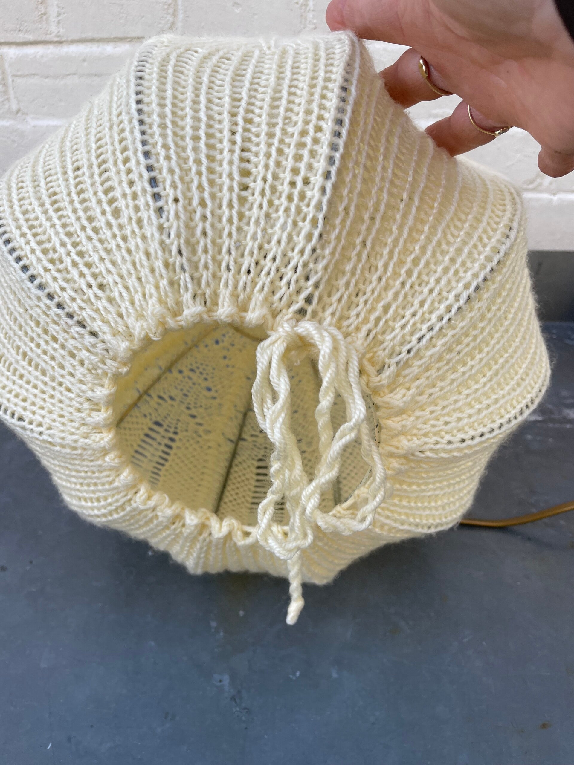 Bijzonder lampje met ivoorkleurige gebreide kap