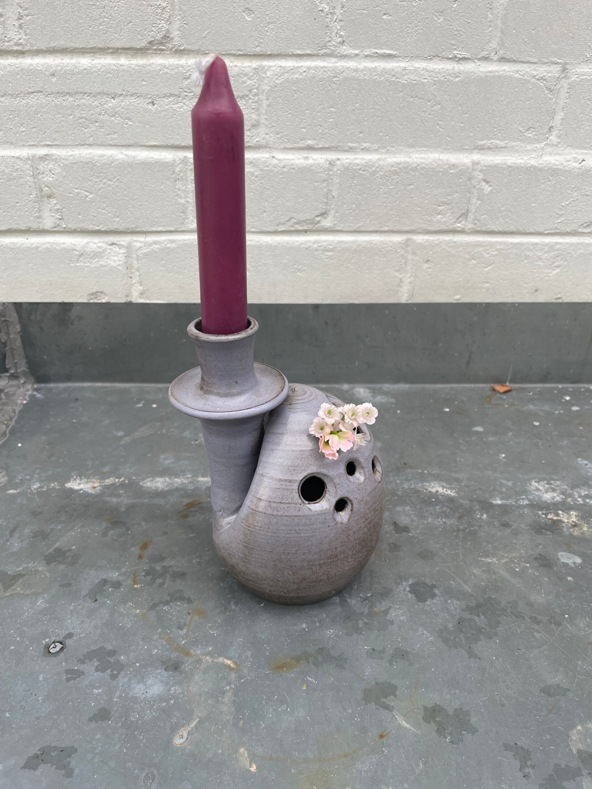Met houder voor een kaars en ikebana gaatjes voor (droog bloemen)