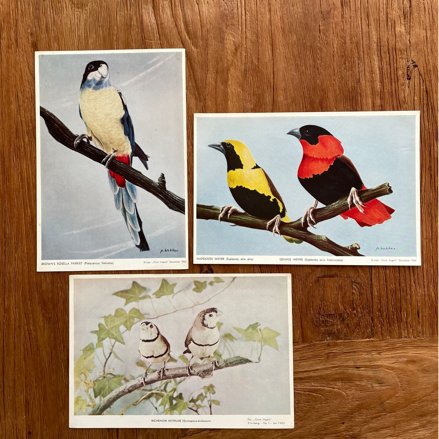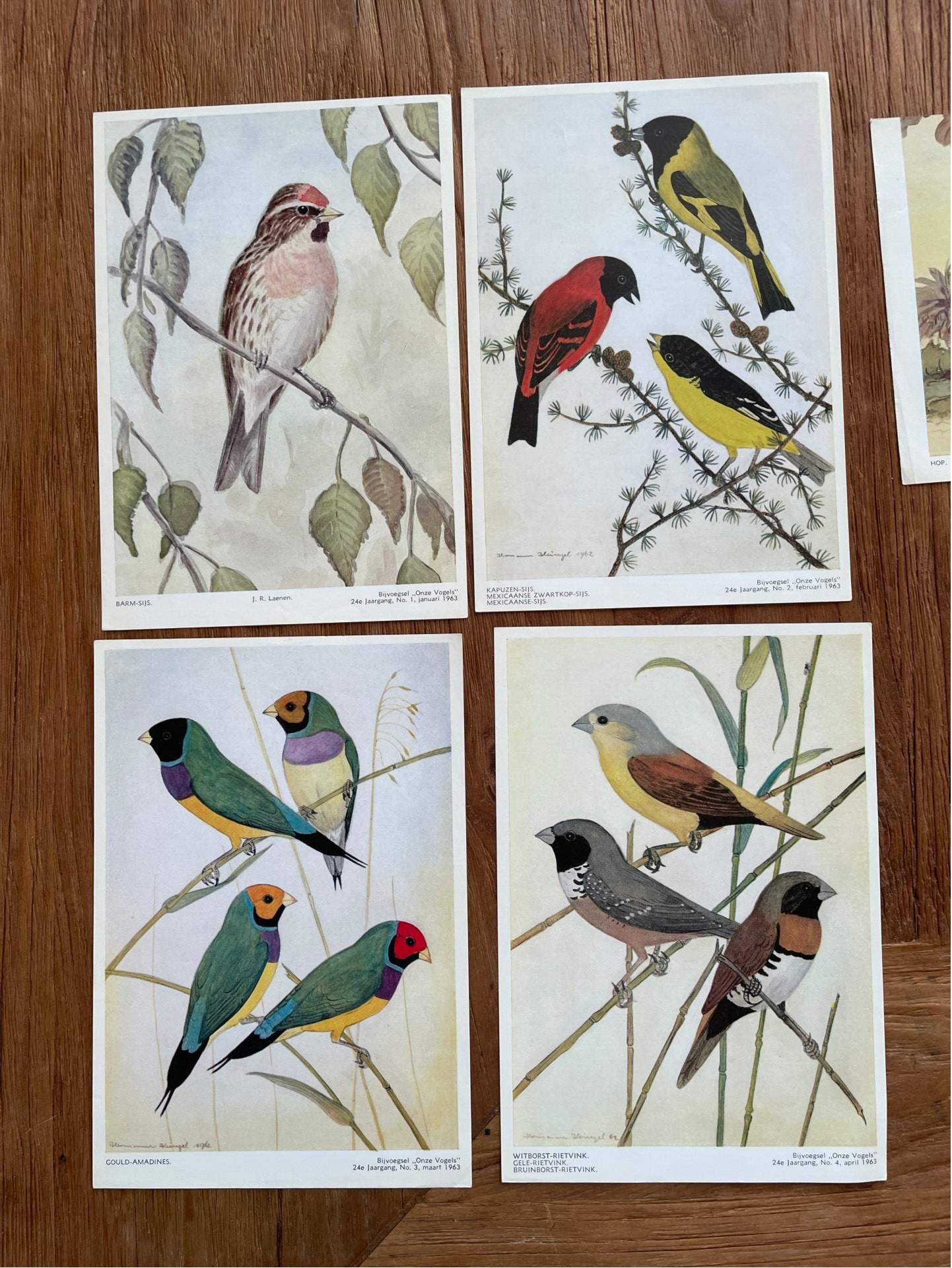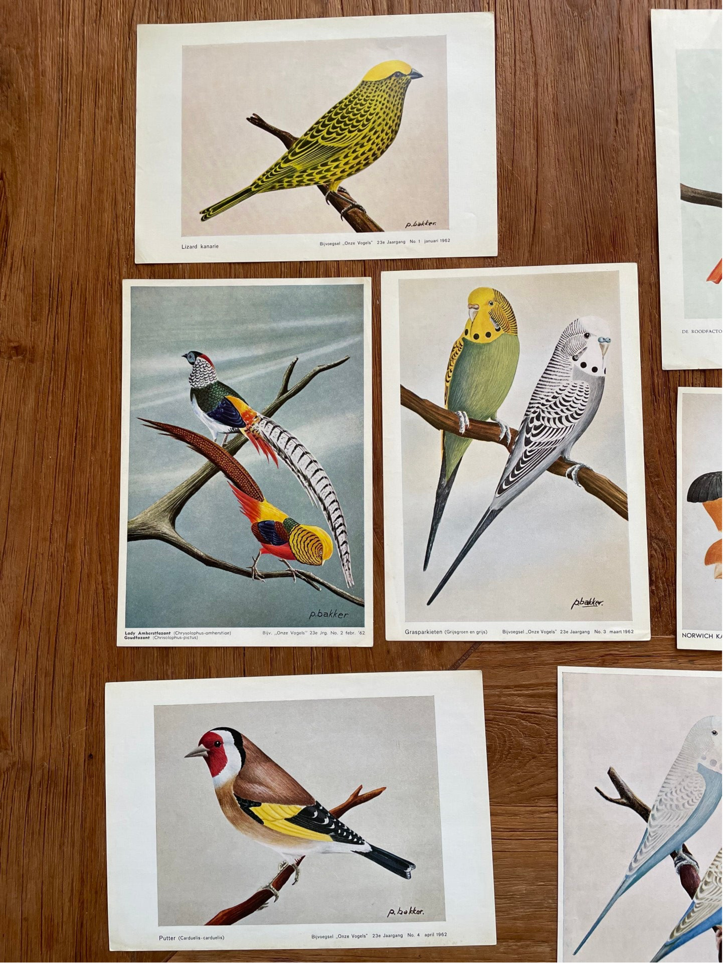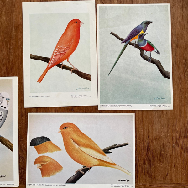 - De platen komen vermoedelijk uit het tijdschrift 'Onze vogels' wat in die tijd iedere maand verscheen. De platen zijn dan ook, naast de vermelding van de vogelsoort, voorzien van jaargang, nummer, maand en jaartal
