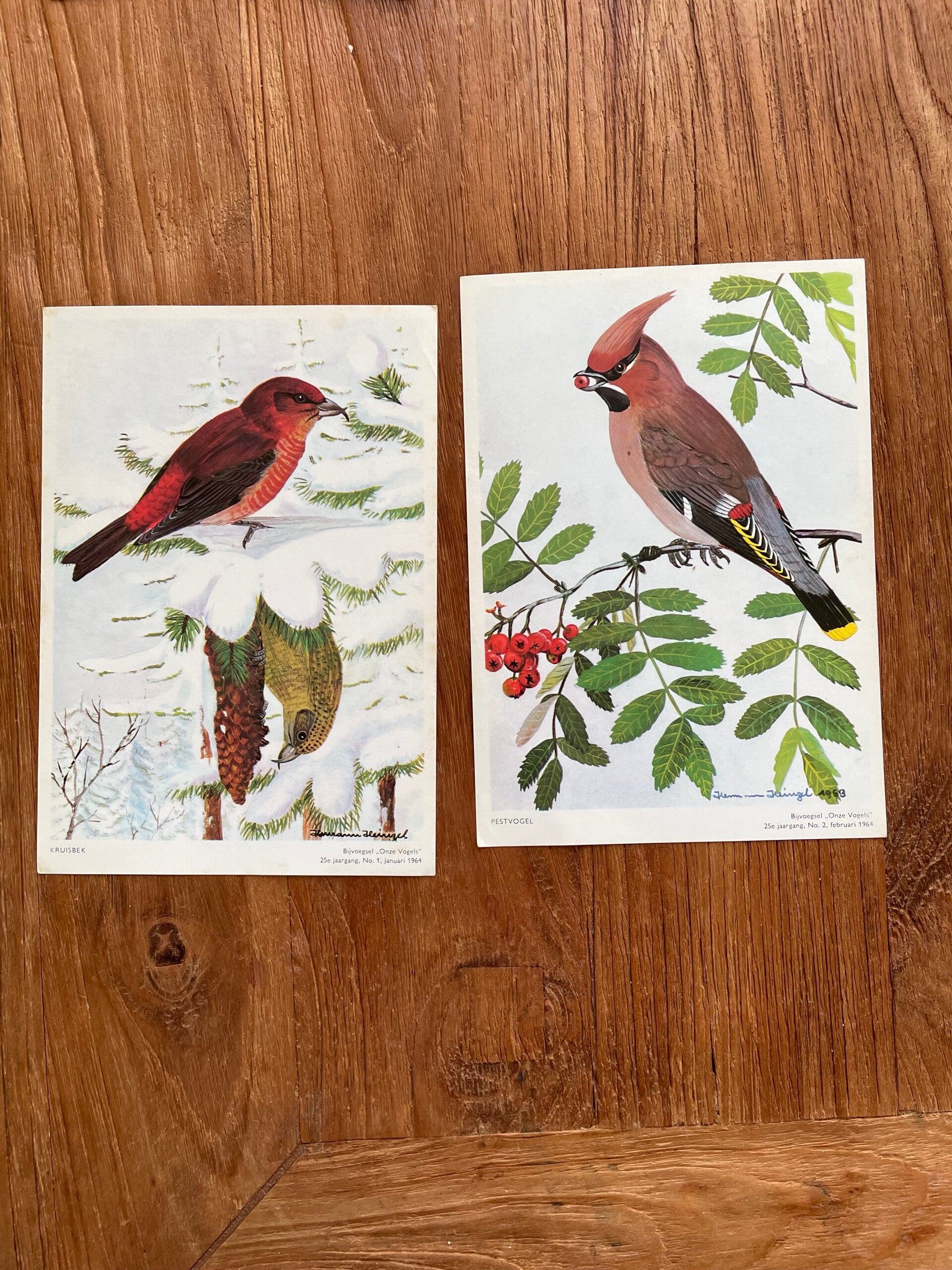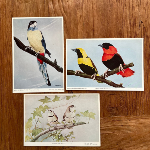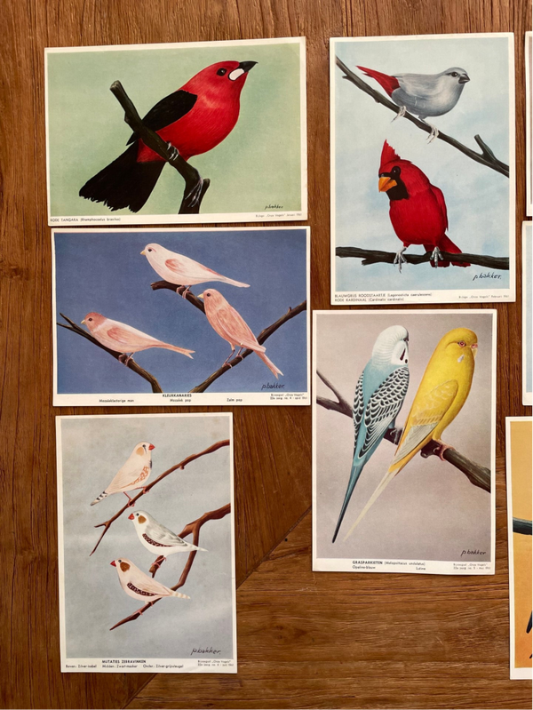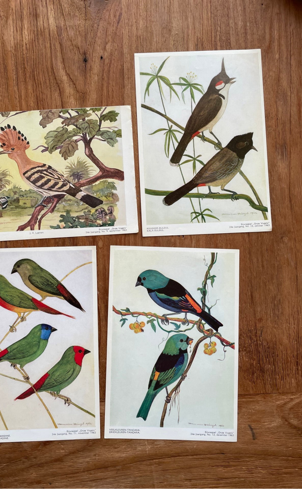 Set van 33 oude vogelplaten uit de reeks 'Onze Vogels', 1958-1964