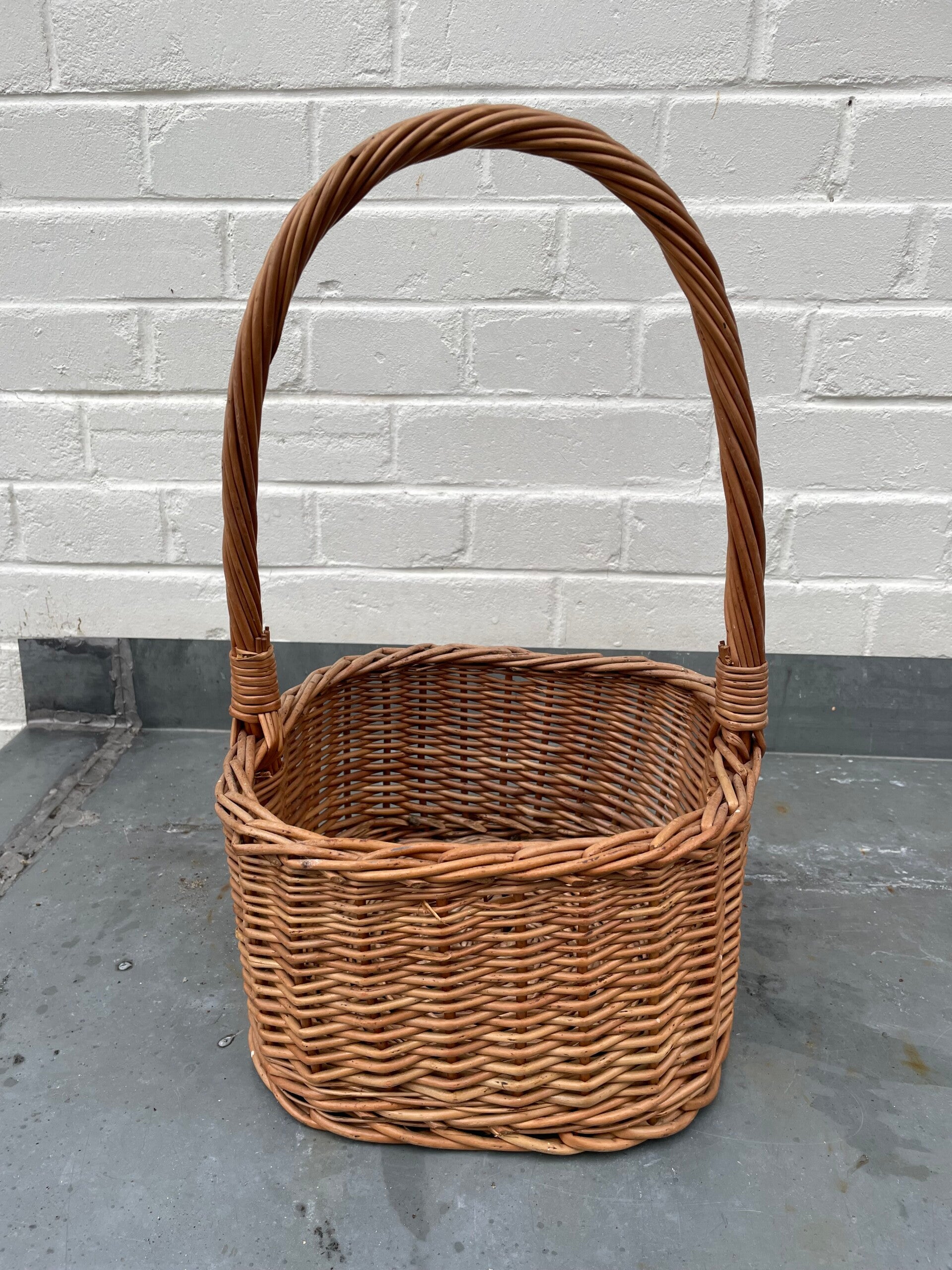 Hoekig rieten mandje met hengsel