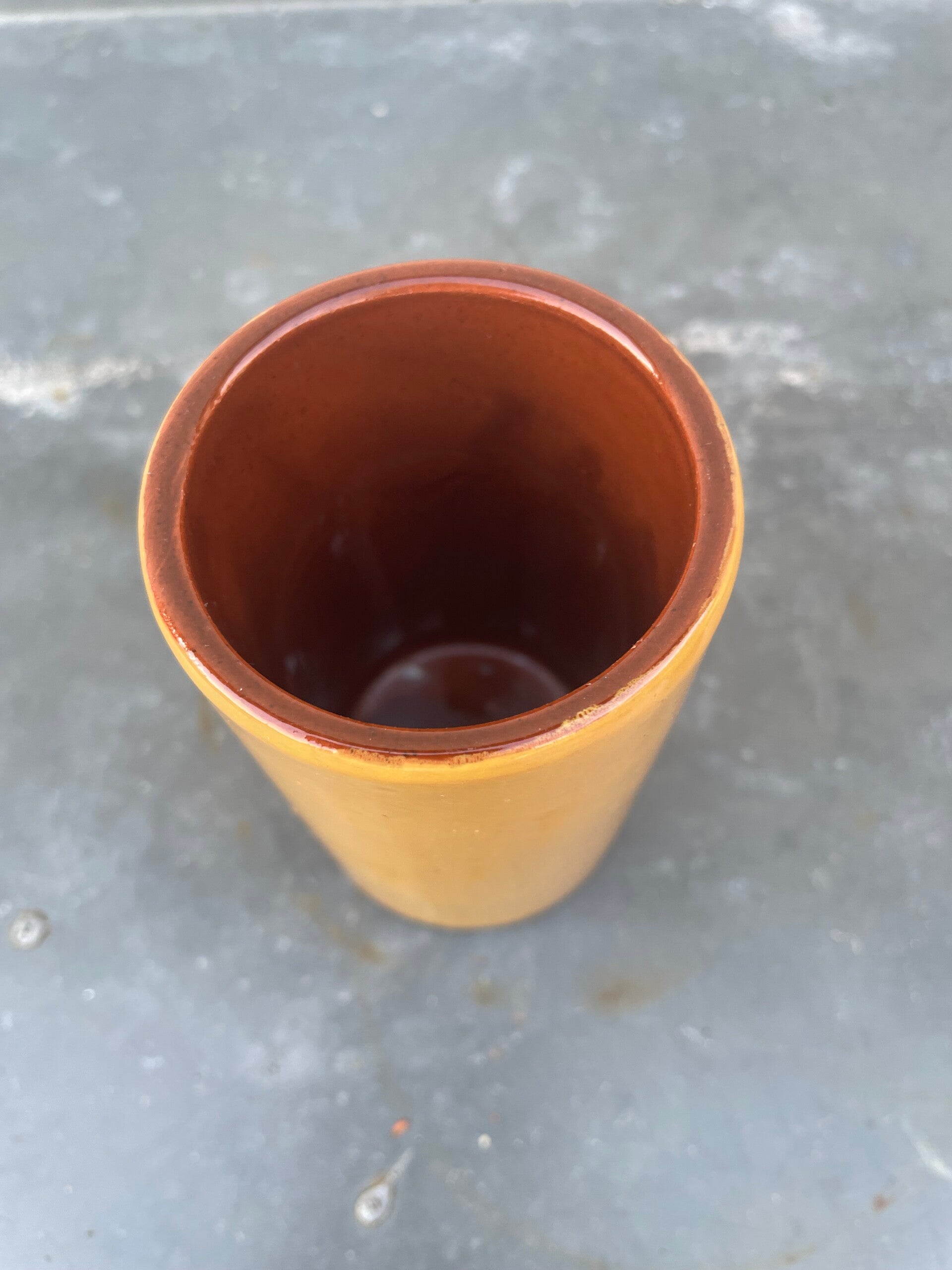 Buitenzijde is geel glanzend geglazuurd