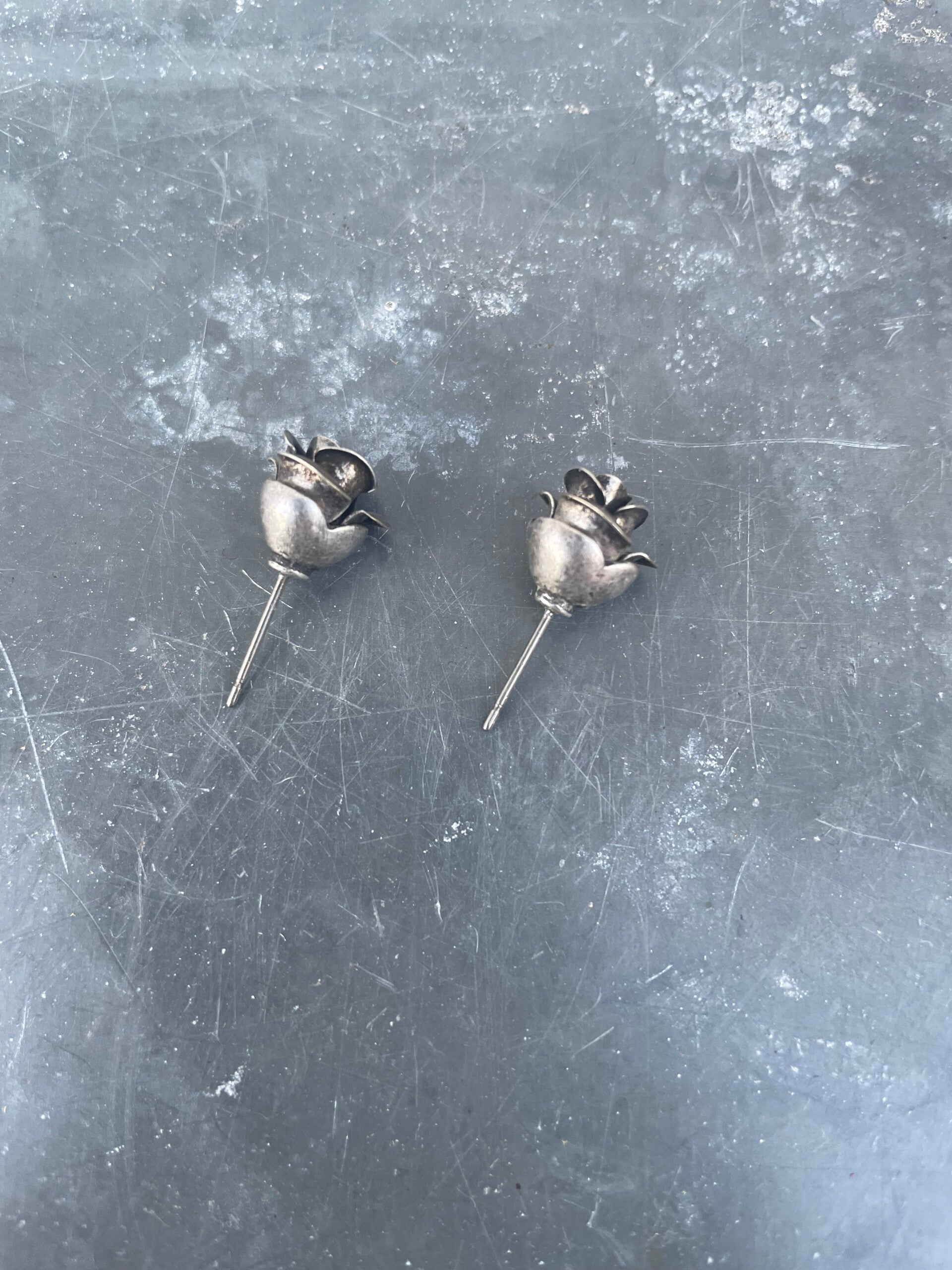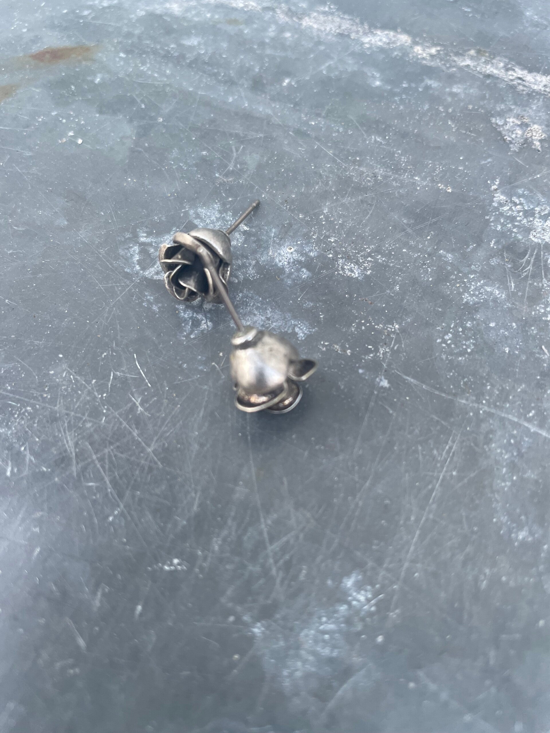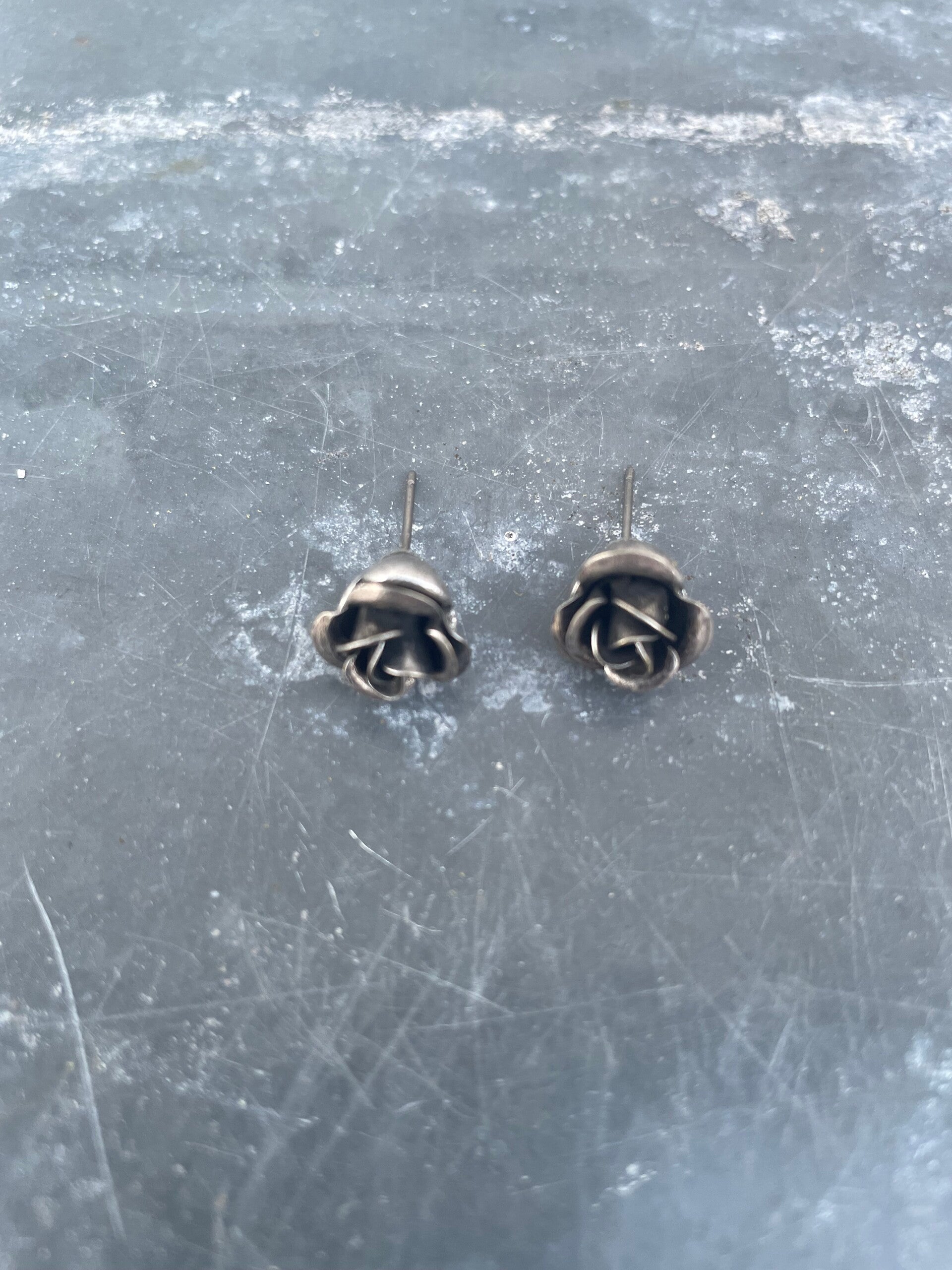 Antieke zilveren oorstekers, roosje