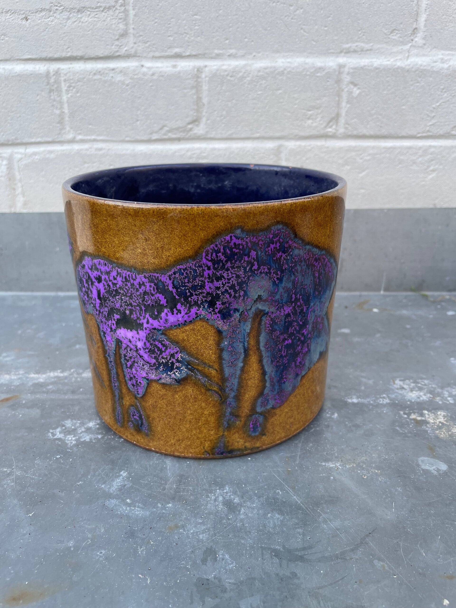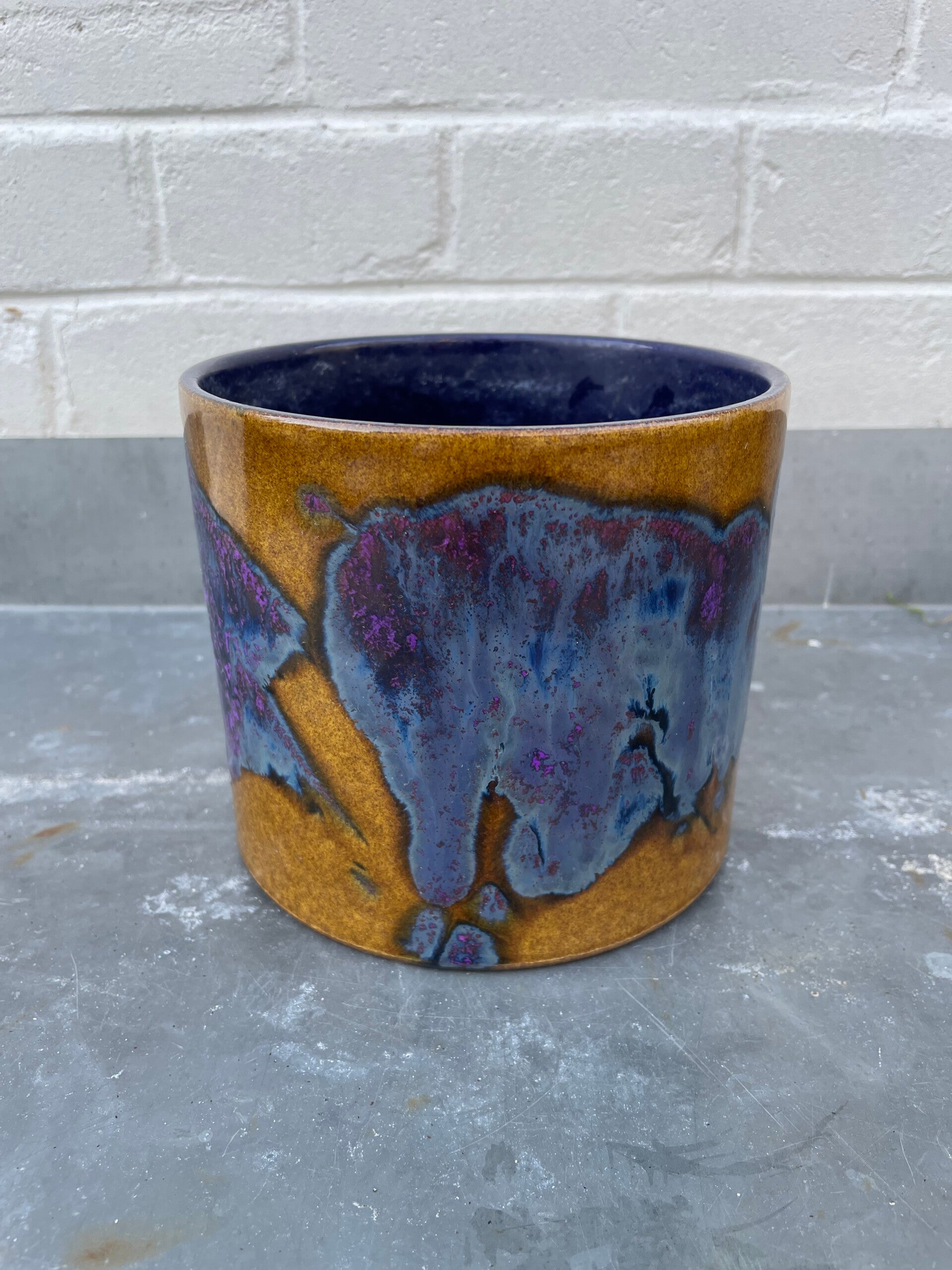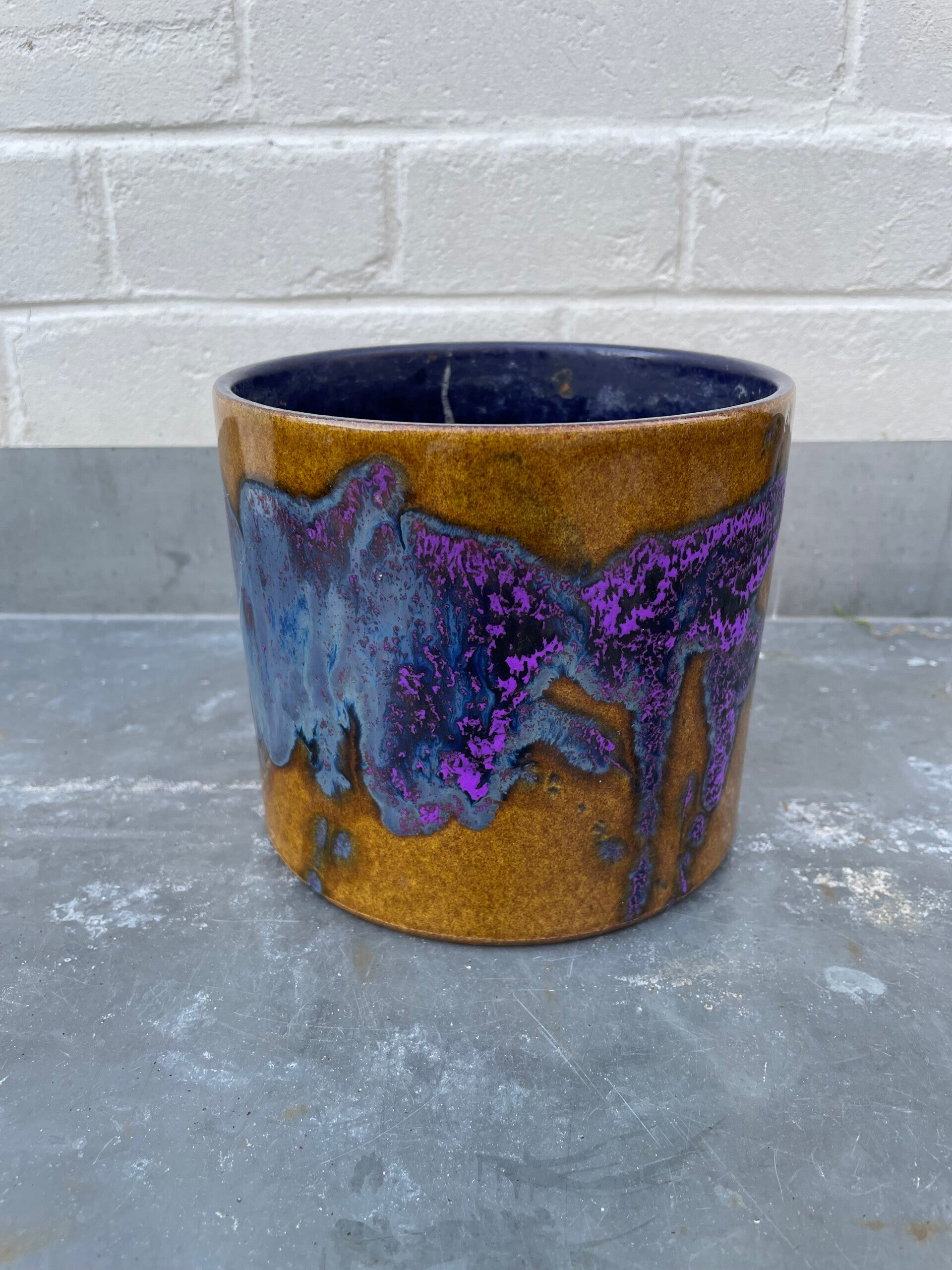 - Buitenzijde amberkleurige basis met blauw/grijze en paarse Fatlava