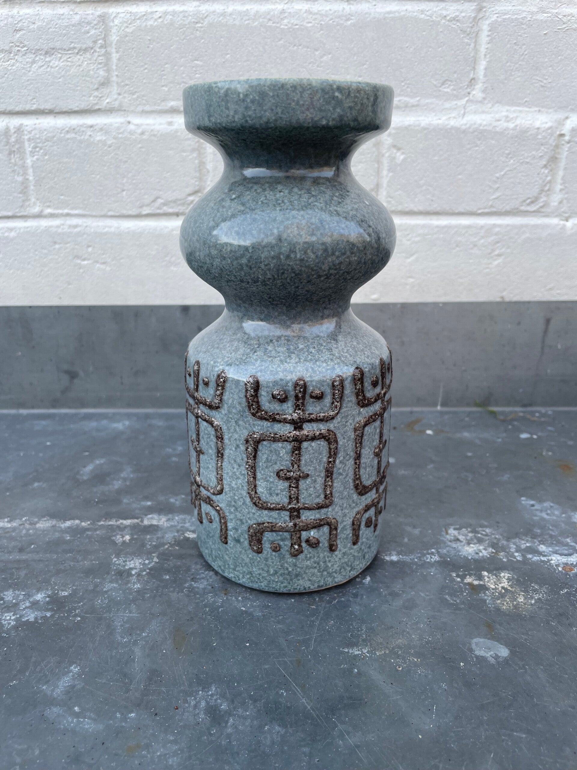Vaasje is uitgevoerd in spikkel licht petrol met ivoorkleurige basis