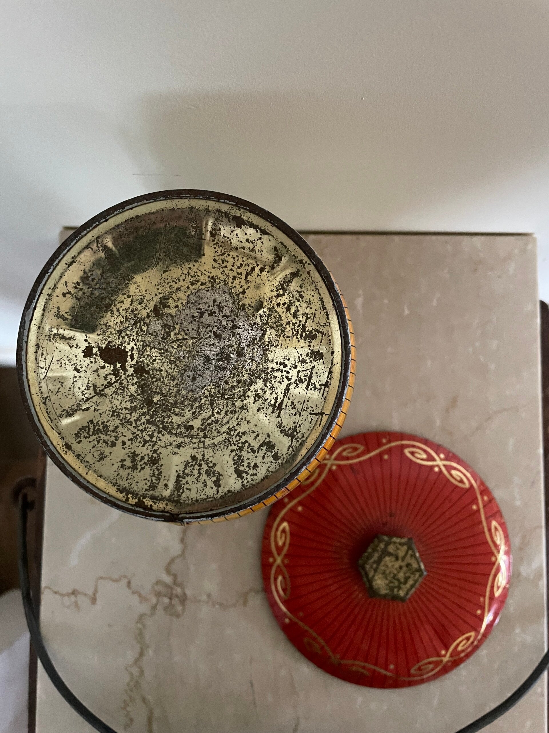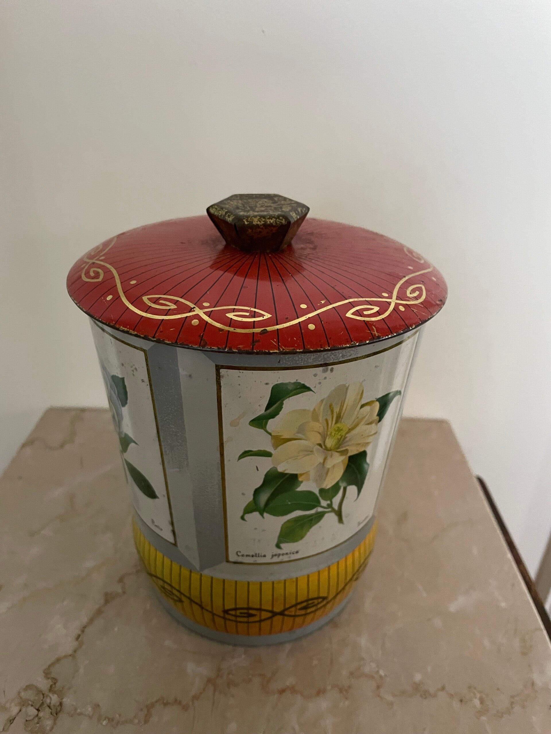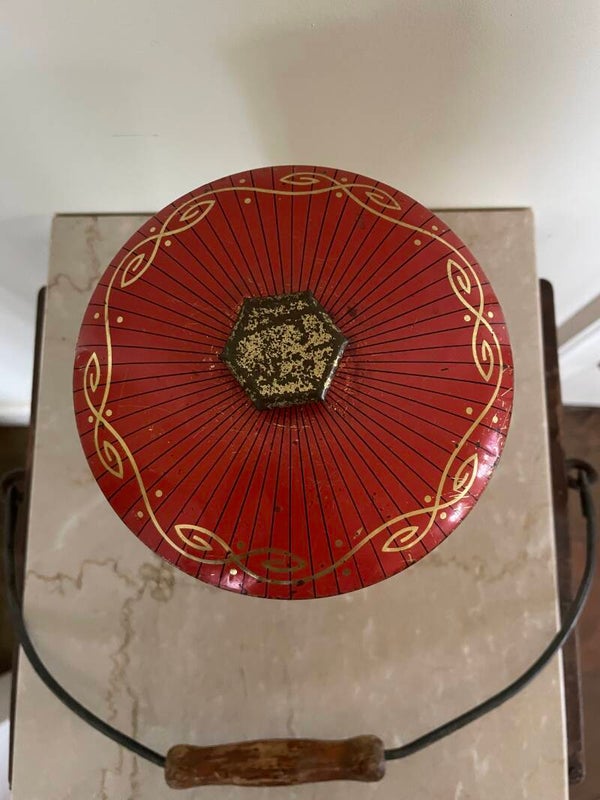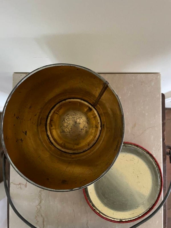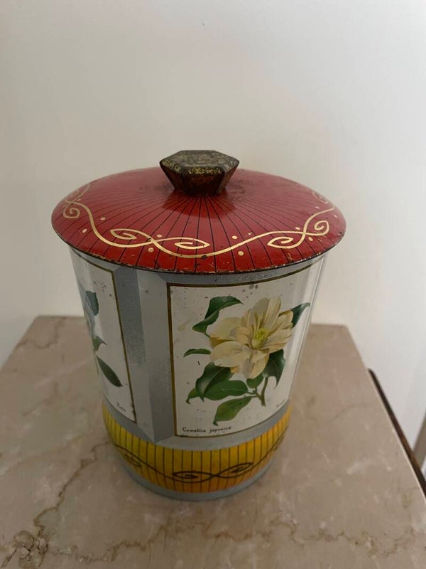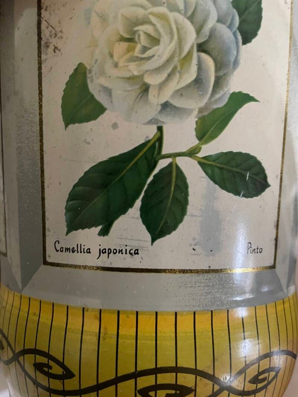 Mooi oud blik met diverse afbeelding van rozen