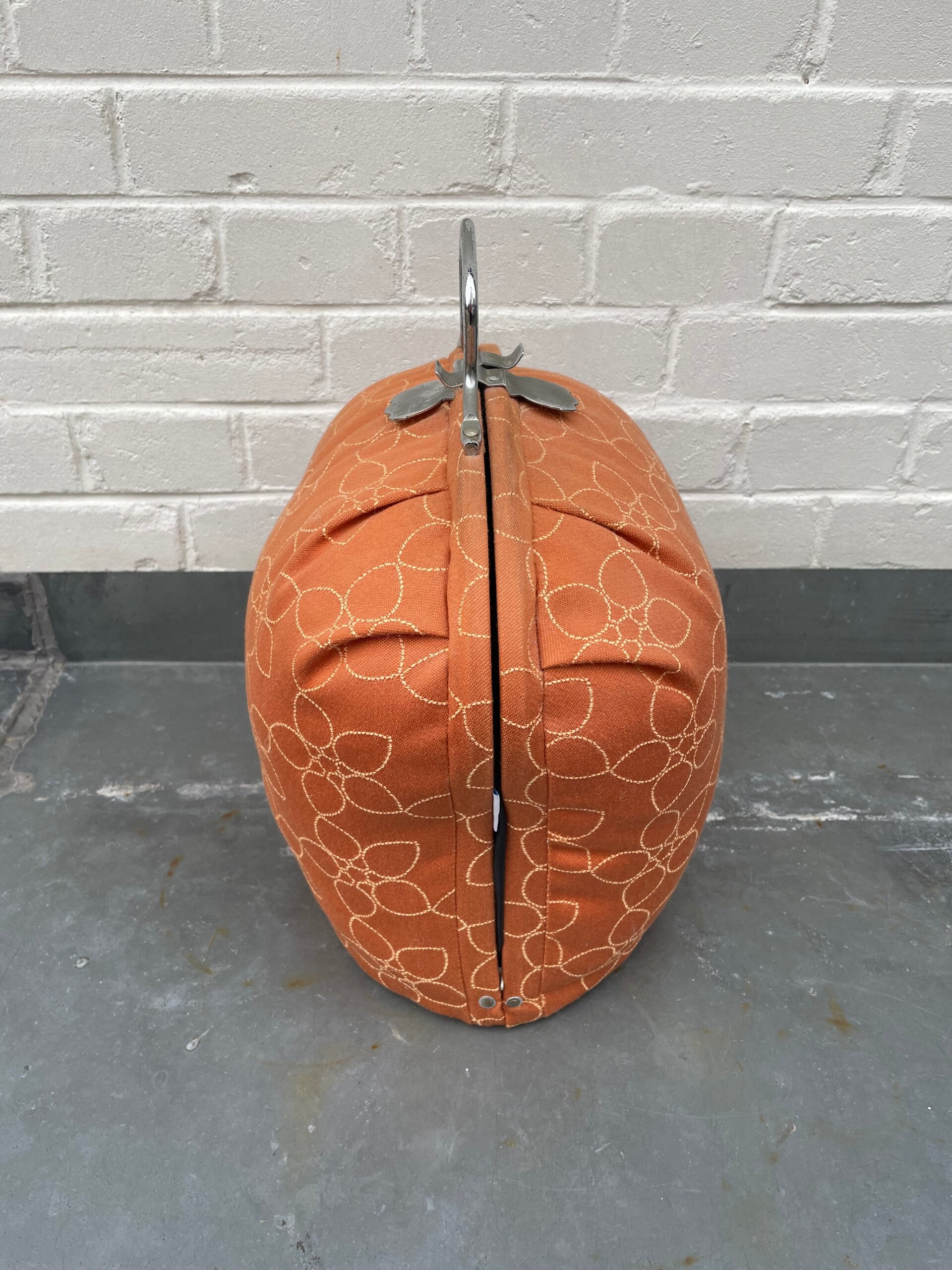 Oranje bruin met bloemmotief in lichtgeel/beige