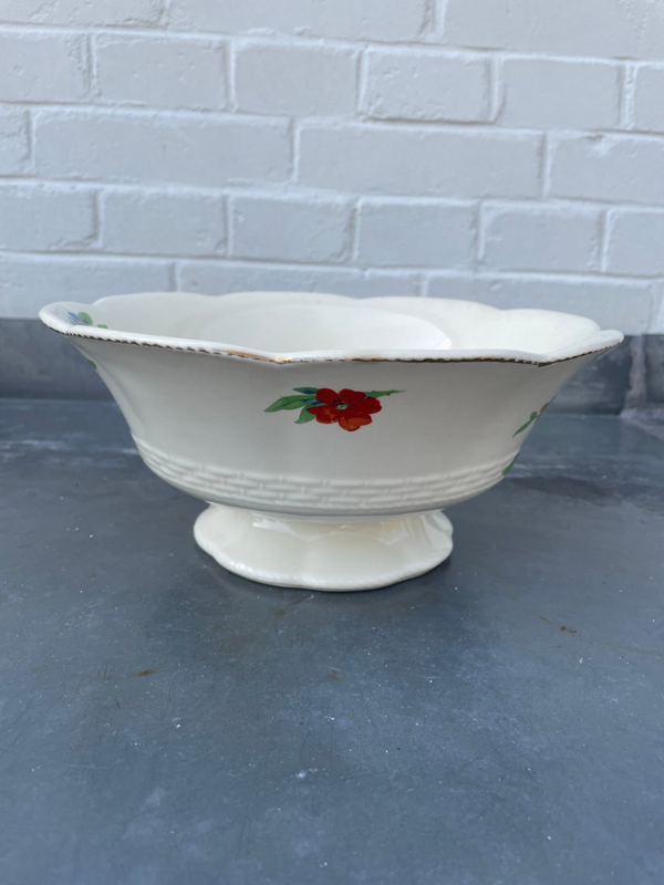 Grote Engelse platelen fruit/salade schaal op voet