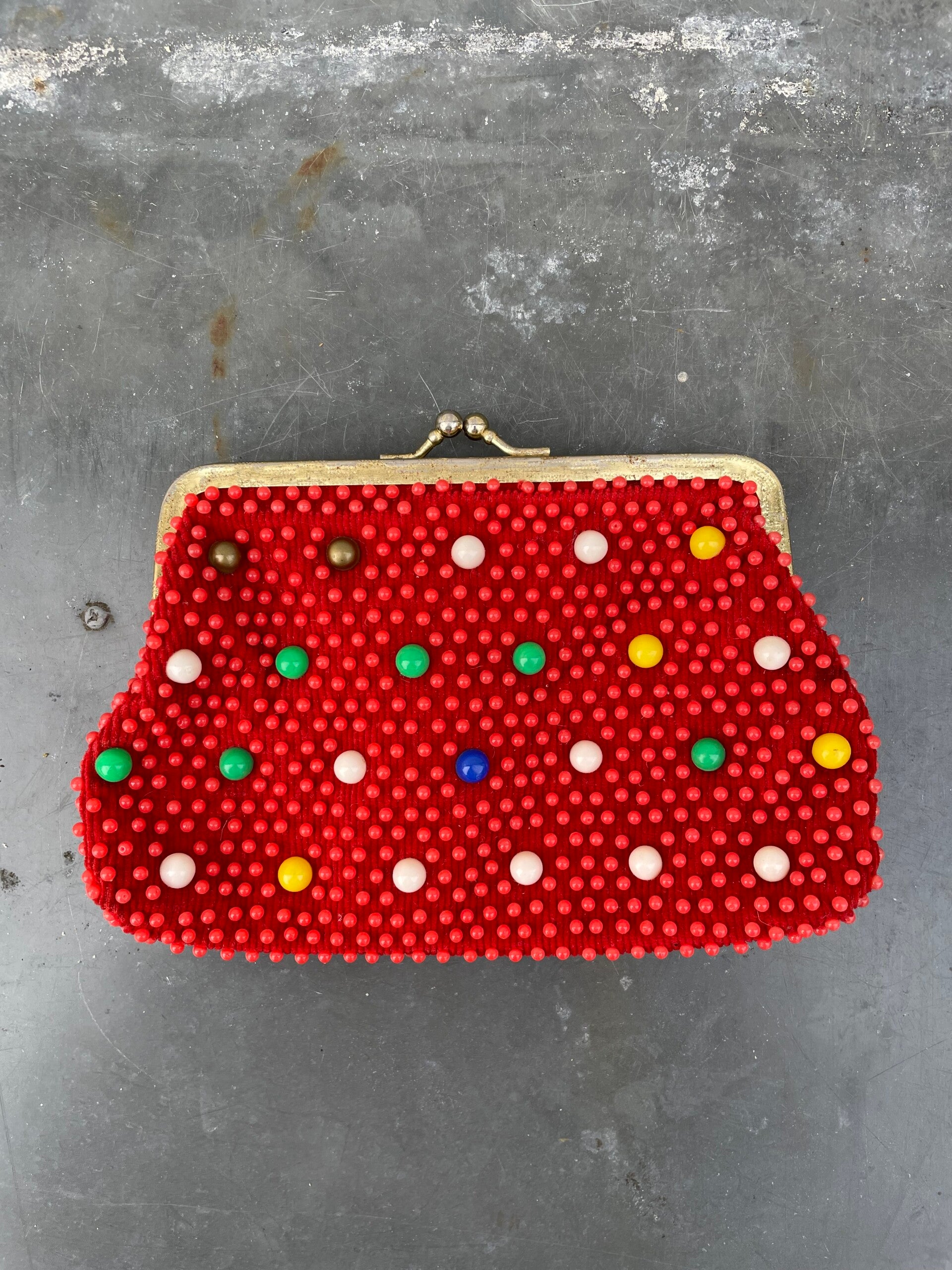 - Met kleine rode pareltjes en hier en daar een grotere in een andere kleur