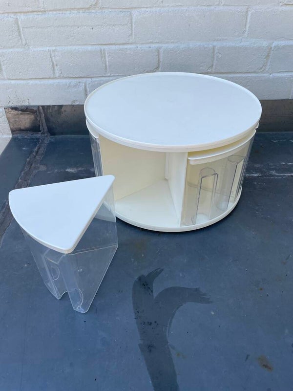 - De carrousel kan draaien en de zes losse bakken mét deksel kunnen eruit.