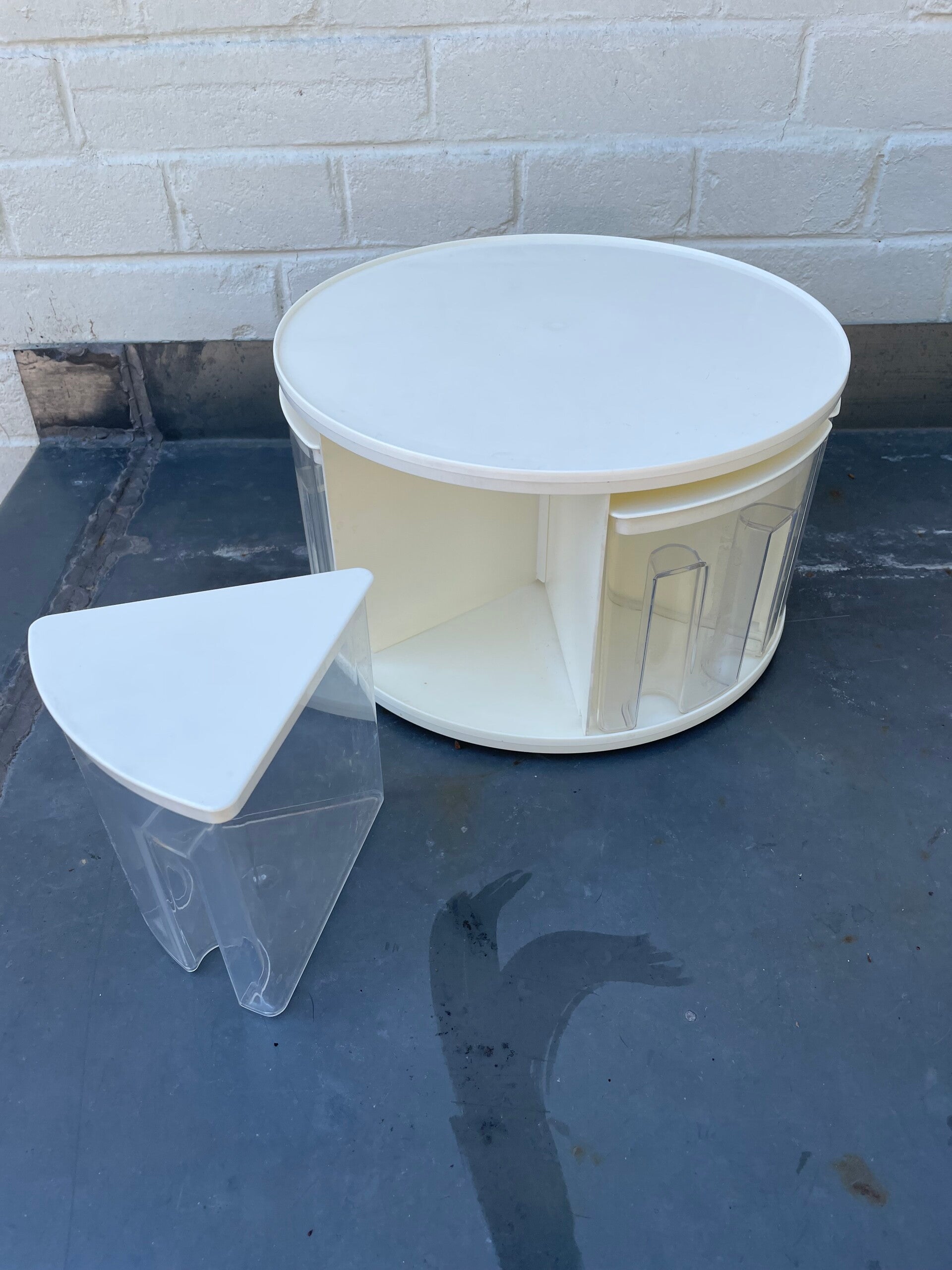 - De caroussel kan draaien en de zes losse bakken mét deksel kunnen eruit.