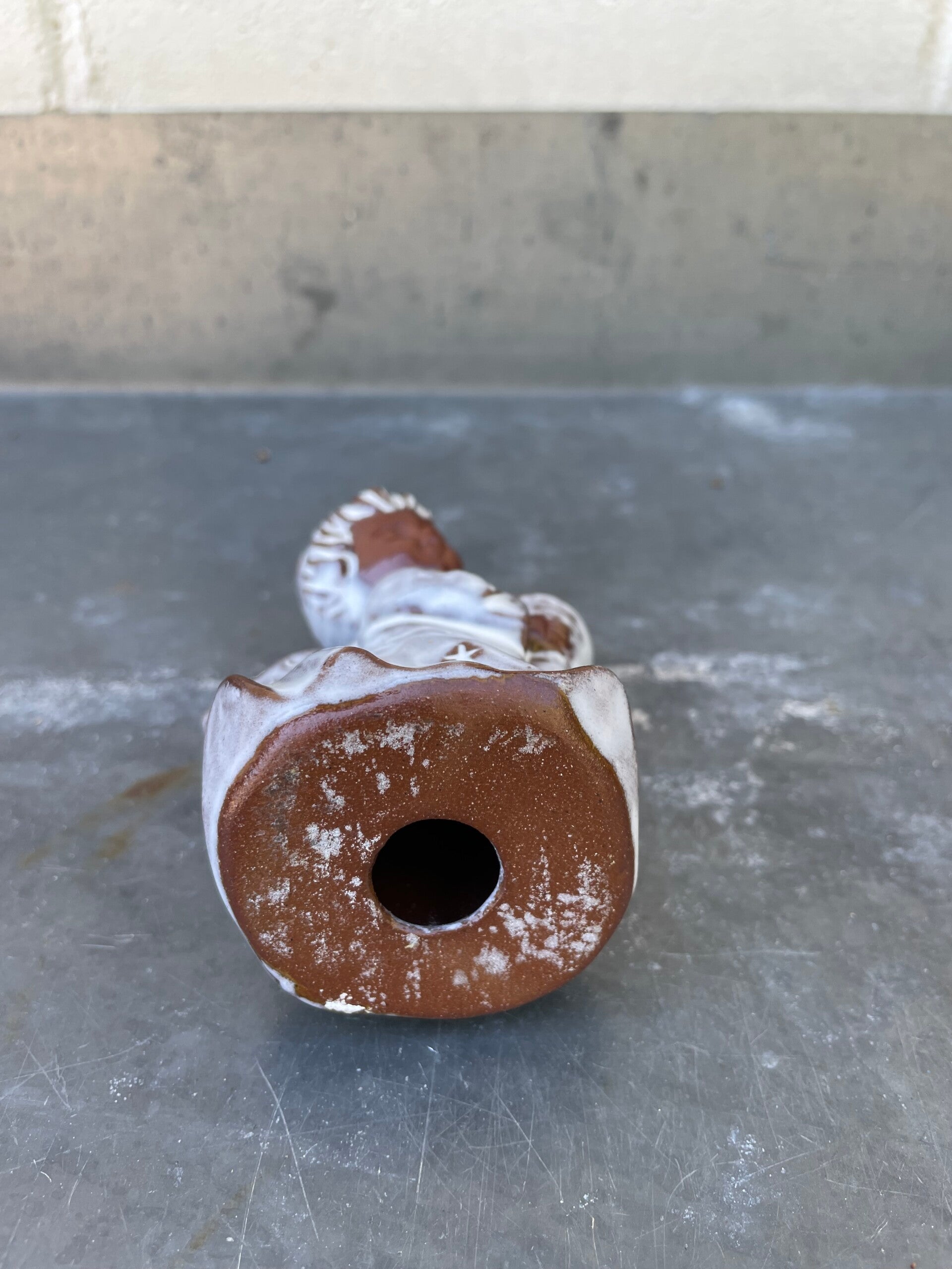 Bruine ondergrond van klei is zichtbaar op het gezichtje en de handjes dit is niet geglazuurd