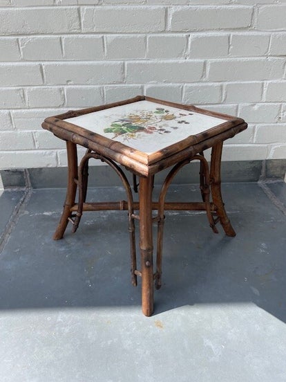 Conditie: Tegel is gescheurd, maar dat doet geen afbreuk aan de schoonheid van dit tafeltje