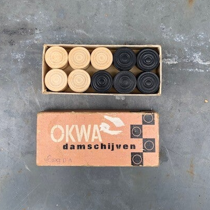 - De damstenen zitten aan weerszijden van het bord in een lade