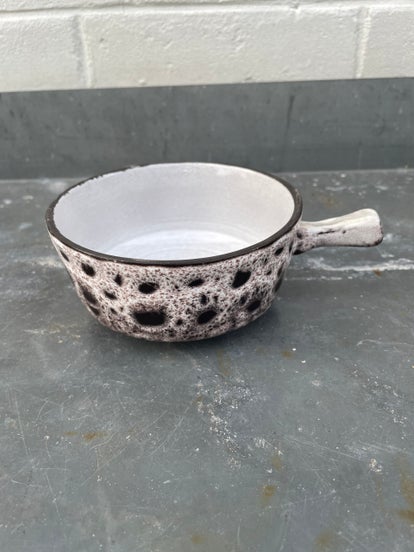 - Leuke handgemaakt kommetje in wit met bruin bruislava