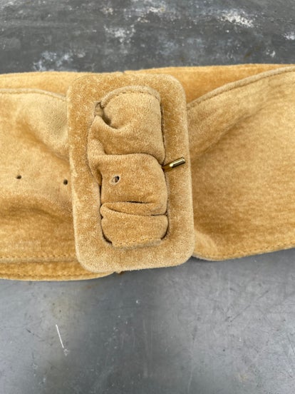 - Bovenin kun je de tas sluiten door middel van een buidelsluiting: de twee touwen aantrekken. De buidelsluiting is gemaakt van zwart suede