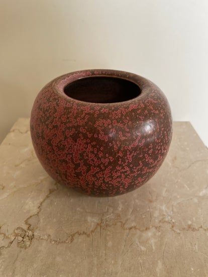 - Bruine glazuurondergrond met roze spat effect rondom