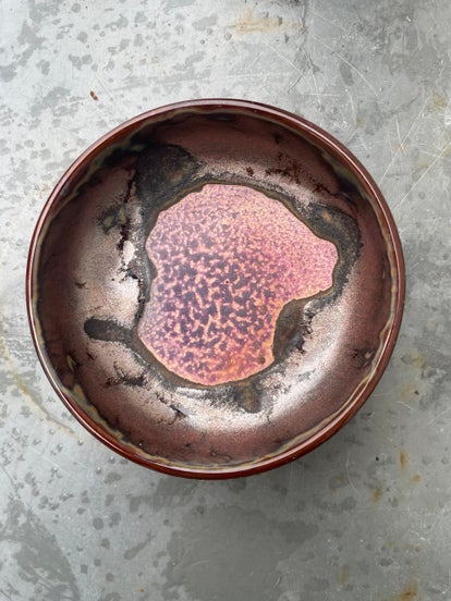 - Glanzend bruin en shimmer taupe/roze met mat paars glazuur